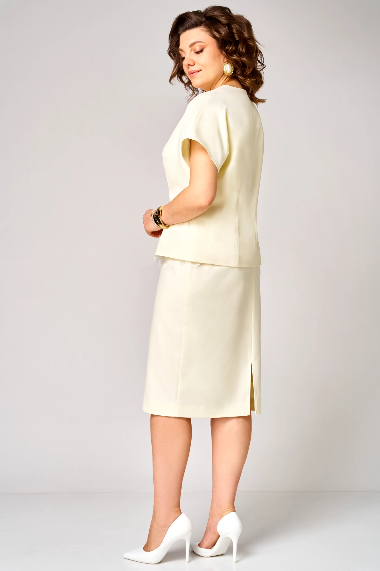 Юбочный костюм Мишель Стиль 1367 тройка сливочное масло