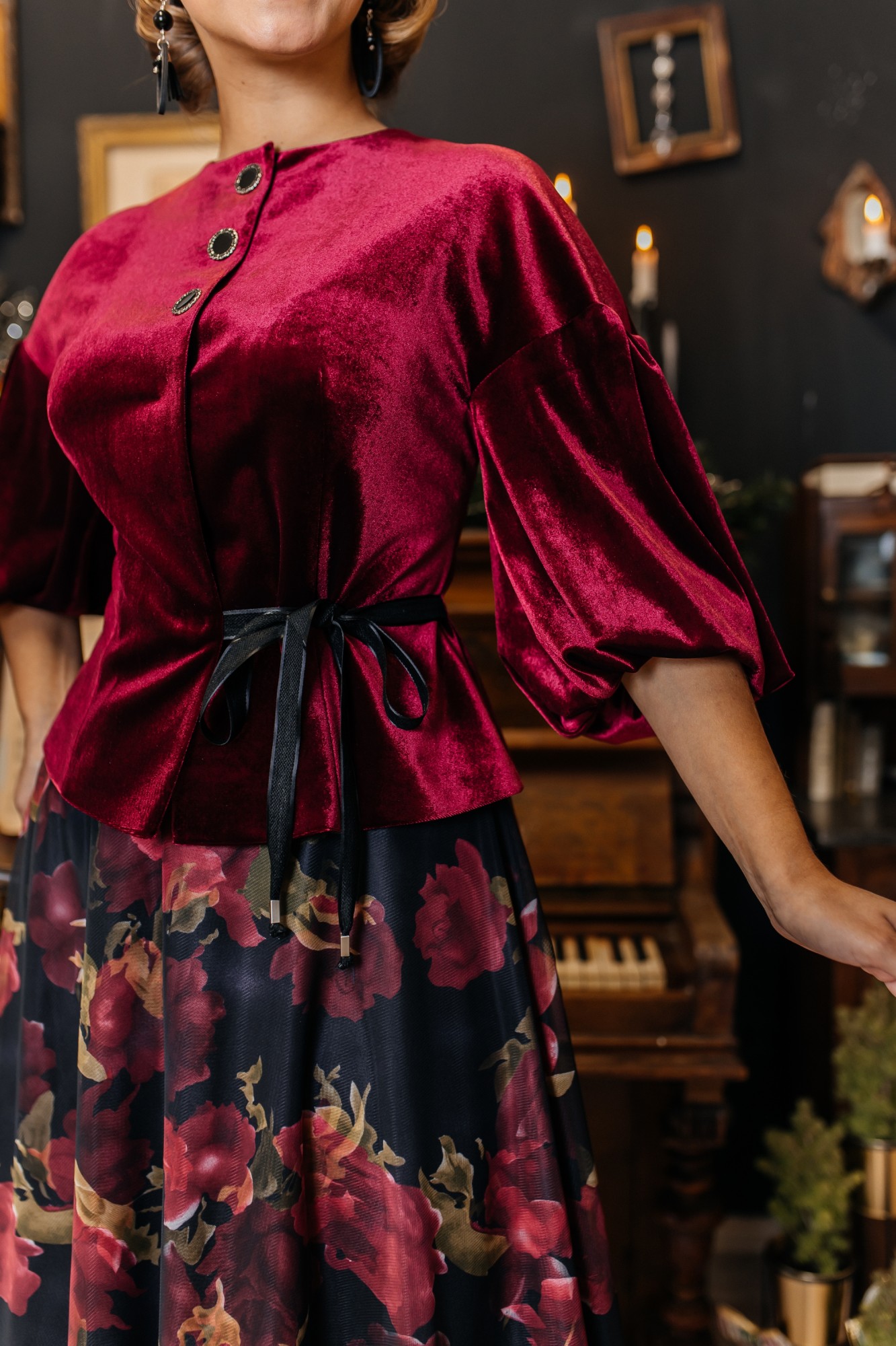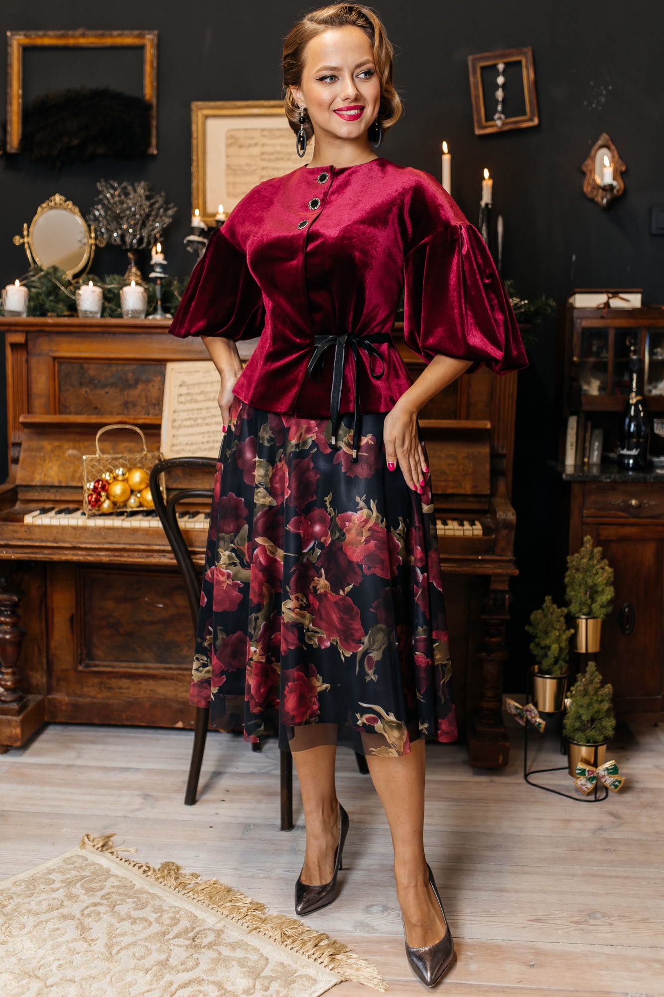 Юбочный костюм Мода Юрс 2625-1 бордо цветы с ID товара 354815
