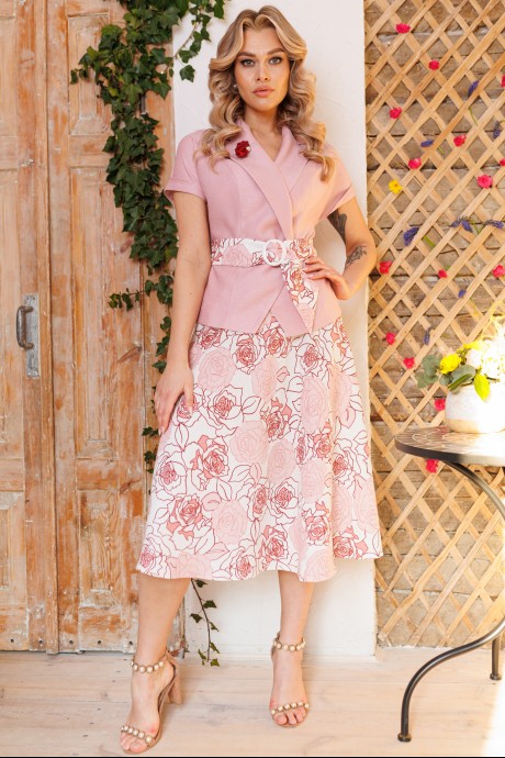 Юбочный костюм Мода Юрс 2641-2 розовый, цветы с ID товара 365263
