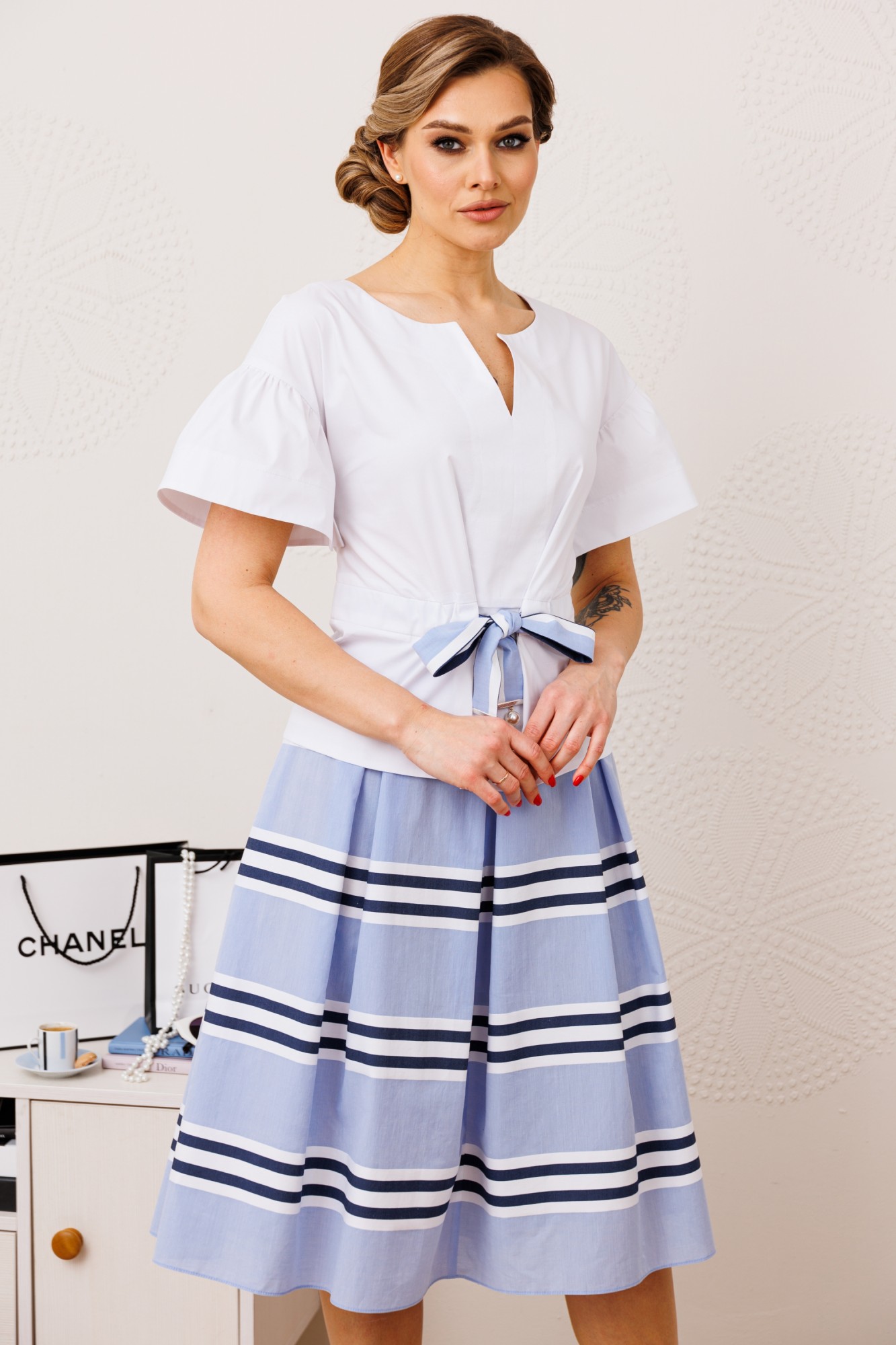 Юбочный костюм Мода Юрс 2688 голубой, белый с ID товара 389214