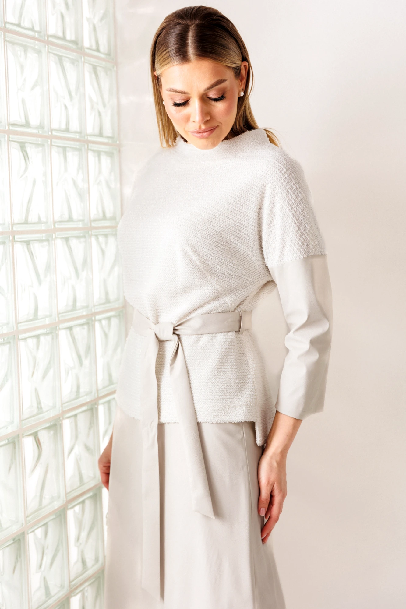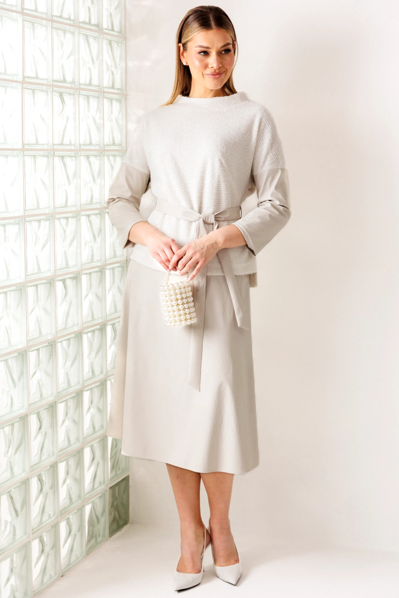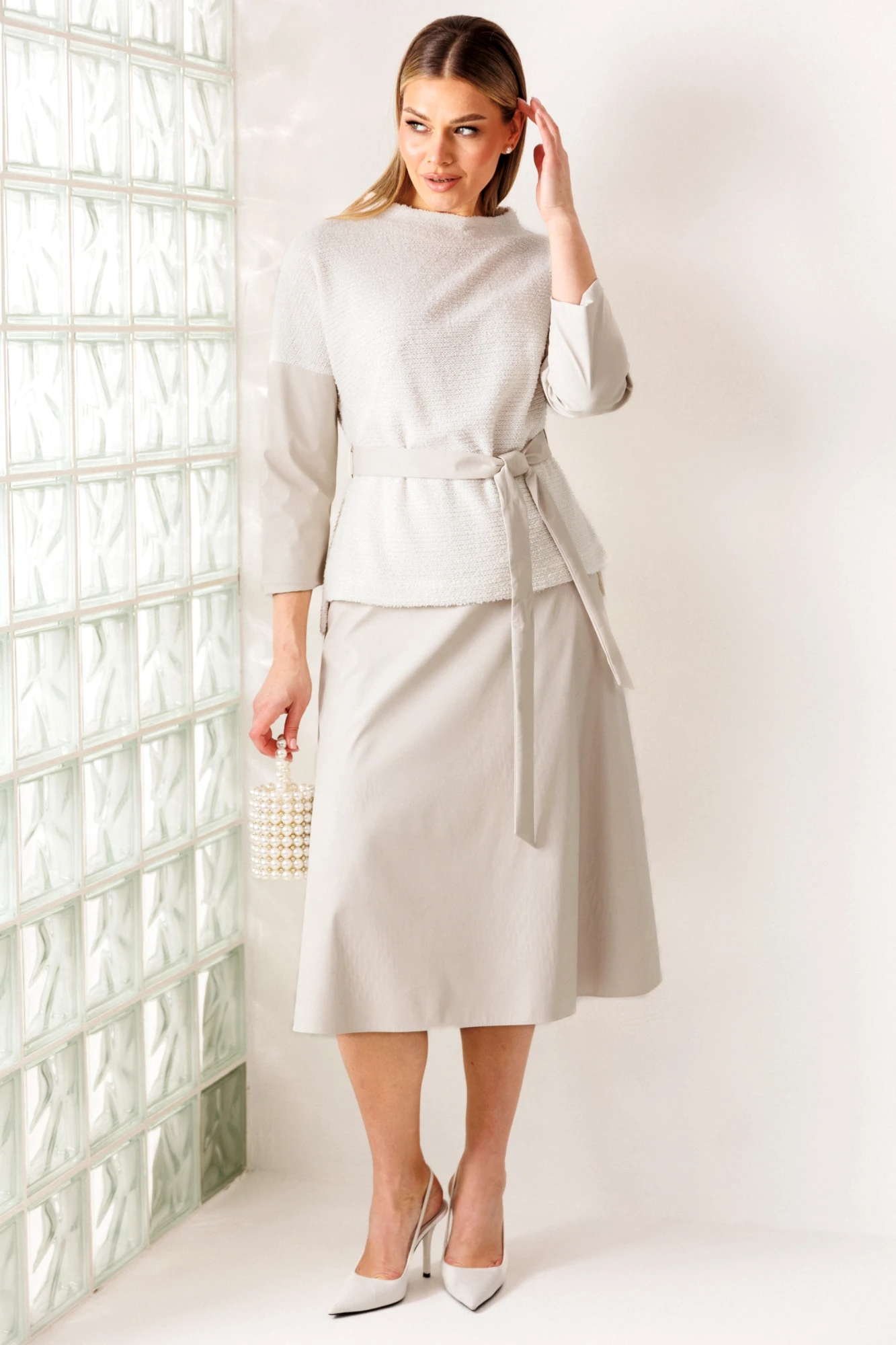 блузон: ПЭ 62% вискоза 25% люрекс 8% эластан 5% юбка: ПЭ 100% (кожа)