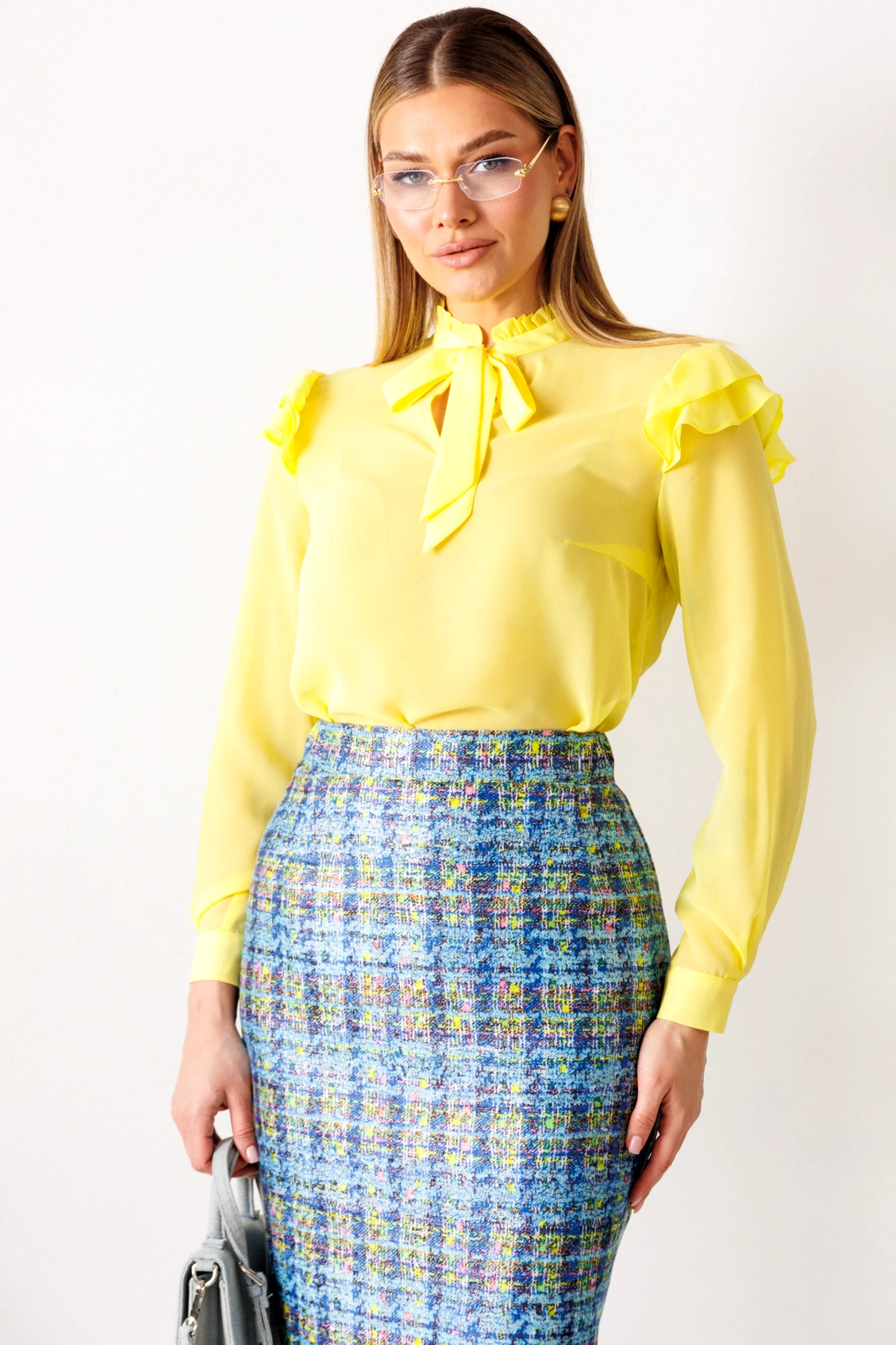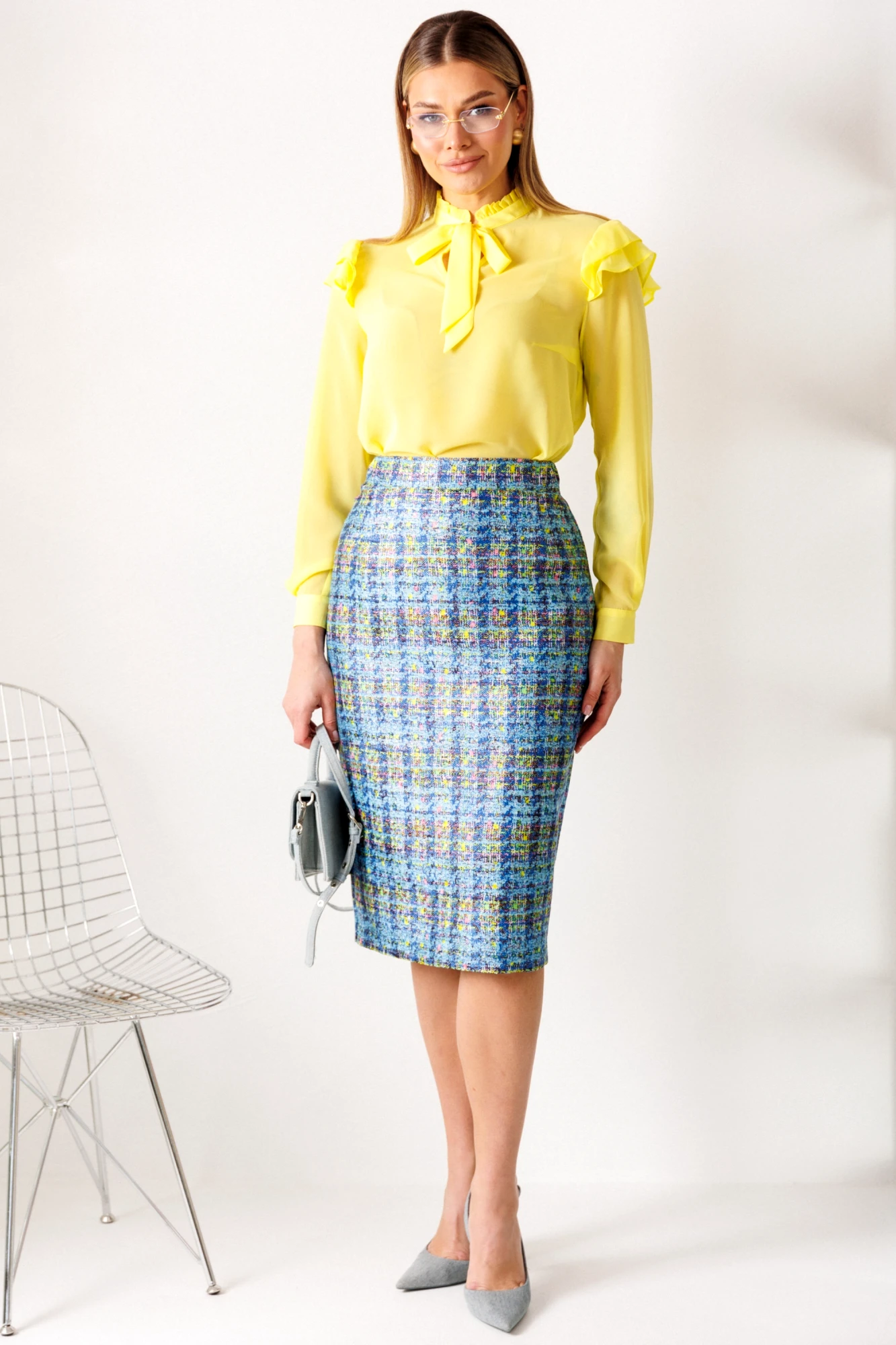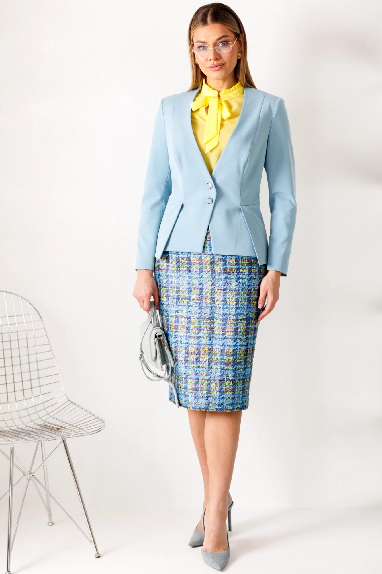 Юбочный костюм Мода Юрс 2811 тройка голубой, желтый