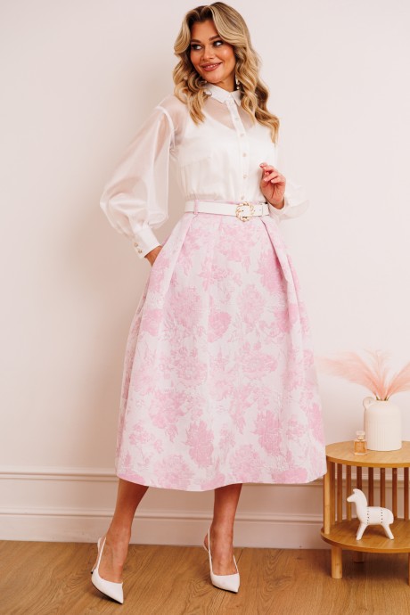 Юбочный костюм Мода Юрс 2880 тройка розовый, цветы с ID товара 421911