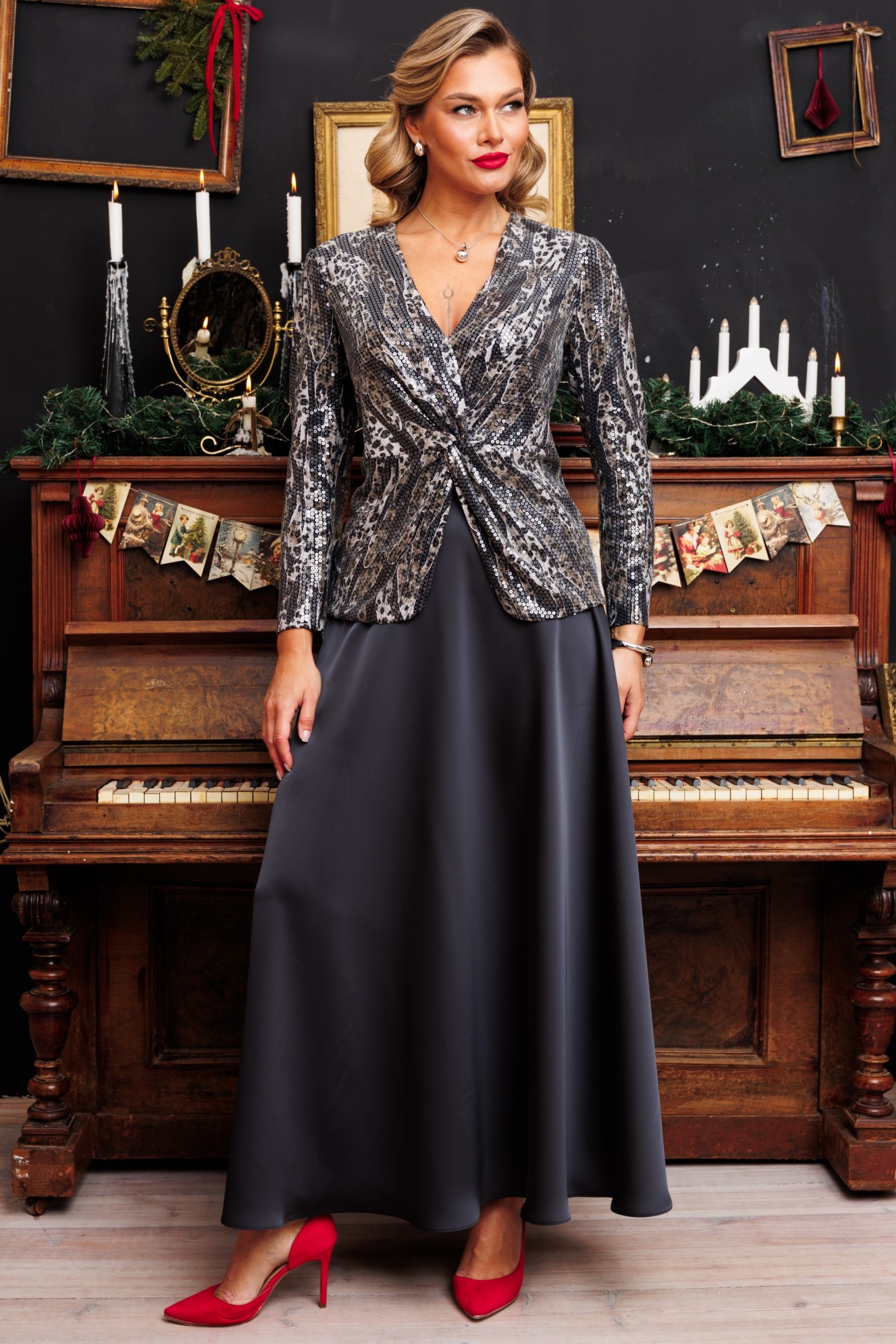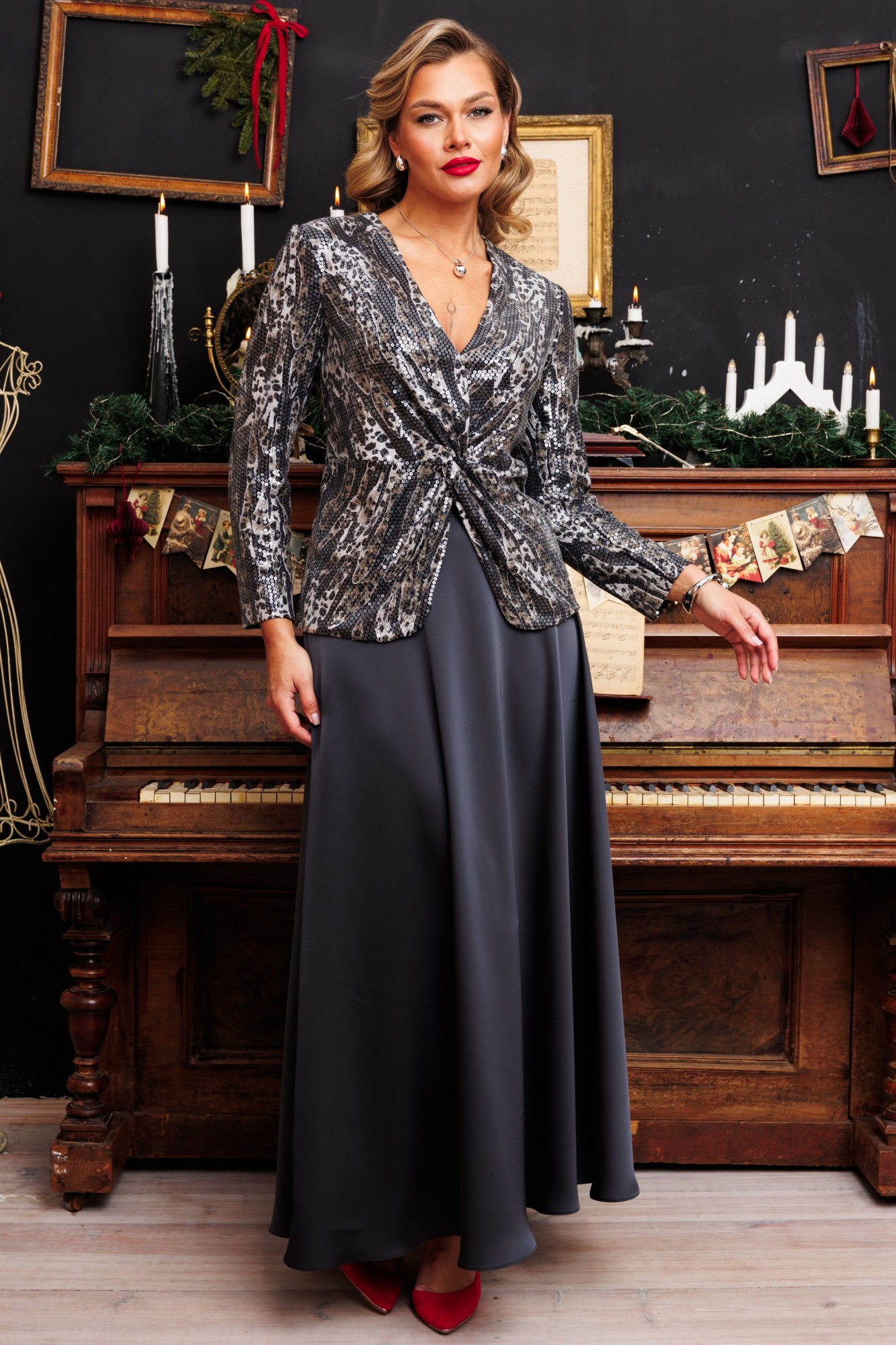 Юбочный костюм Мода Юрс 2881 хаки, серый с ID товара 412519