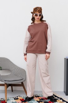 Костюм двухпредметный: состоит из жилета и юбки. Жилет прямого силуэта оверсайз. По переду таллиевая вытачка переходящая в прорезной карман с клапаном и двумя обтачками. Спинка цельнокроеная. Перед фигурный симметричный с застежкой на правом плече на петли и пуговицы. Для дополнительной фиксации по центру застежка на одну петлю и пуговицу. Юбка прилегающего силуэта, зауженная к низу, длиной ниже колена с высоким разрезом по центру и застежкой на тесьму- молнию. Переднее полотнище юбки с рельефами, наклонно к которым расположены карманы. Пояс с застежкой на потайную пуговицу и крючек.
