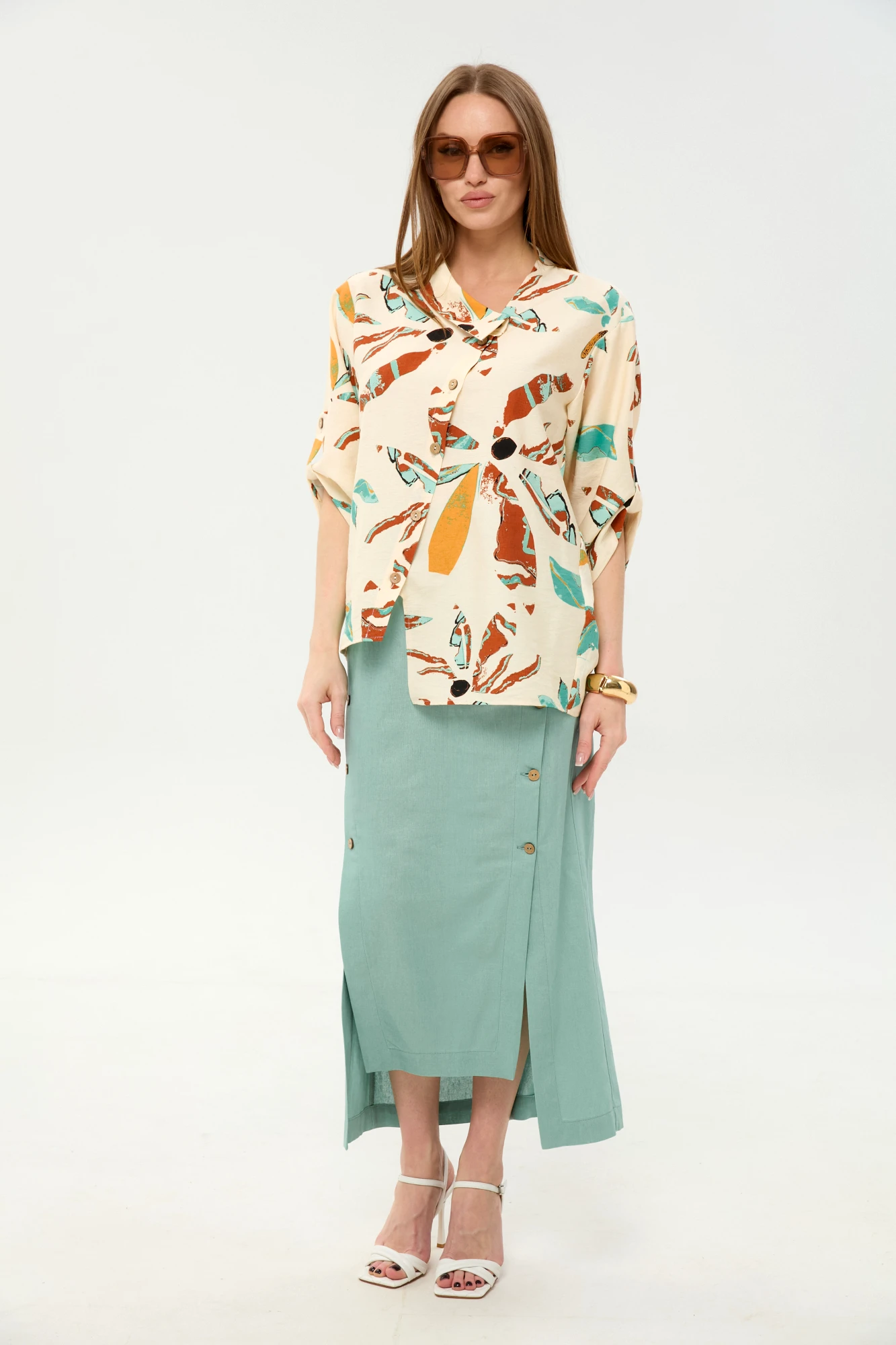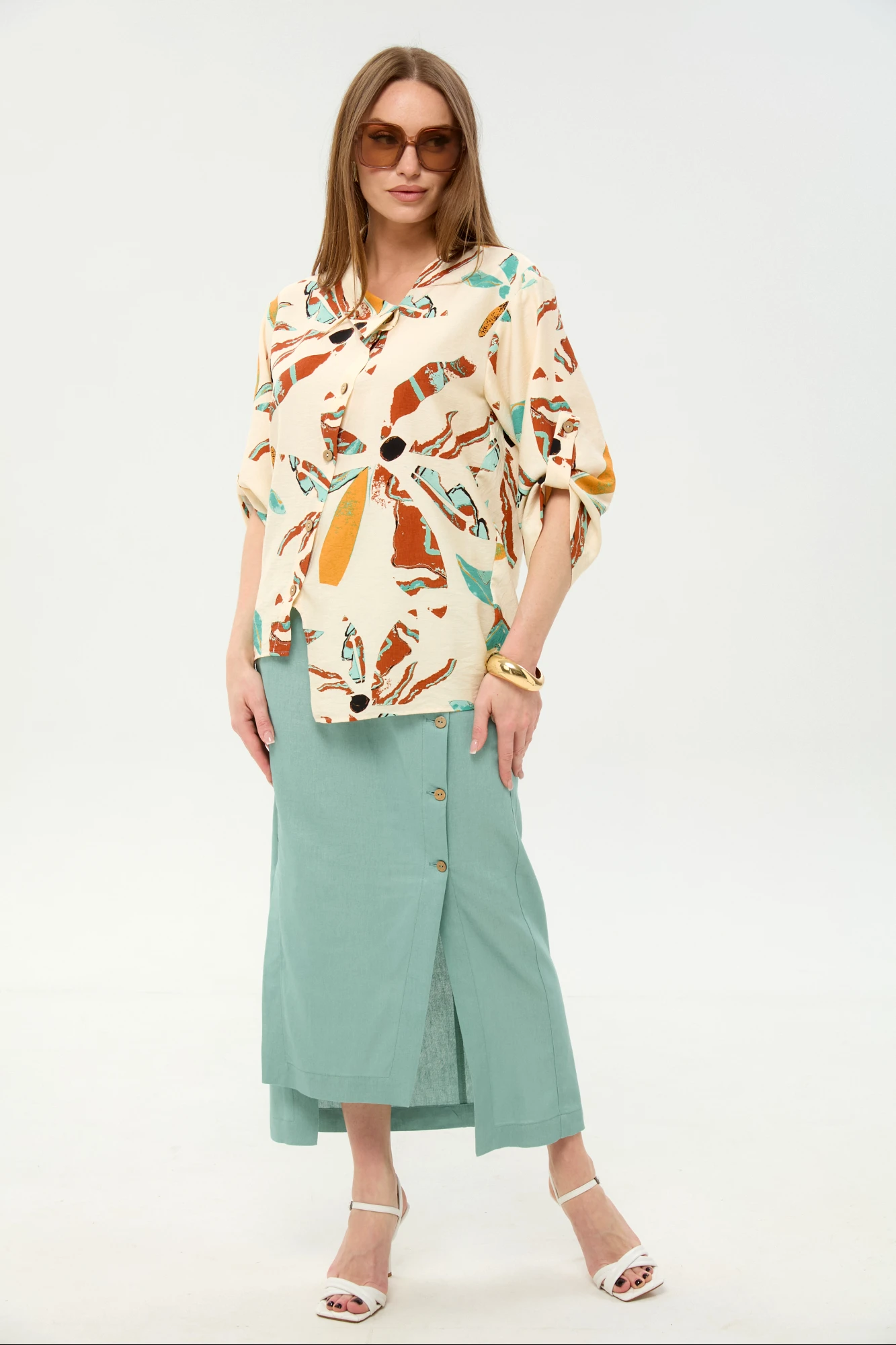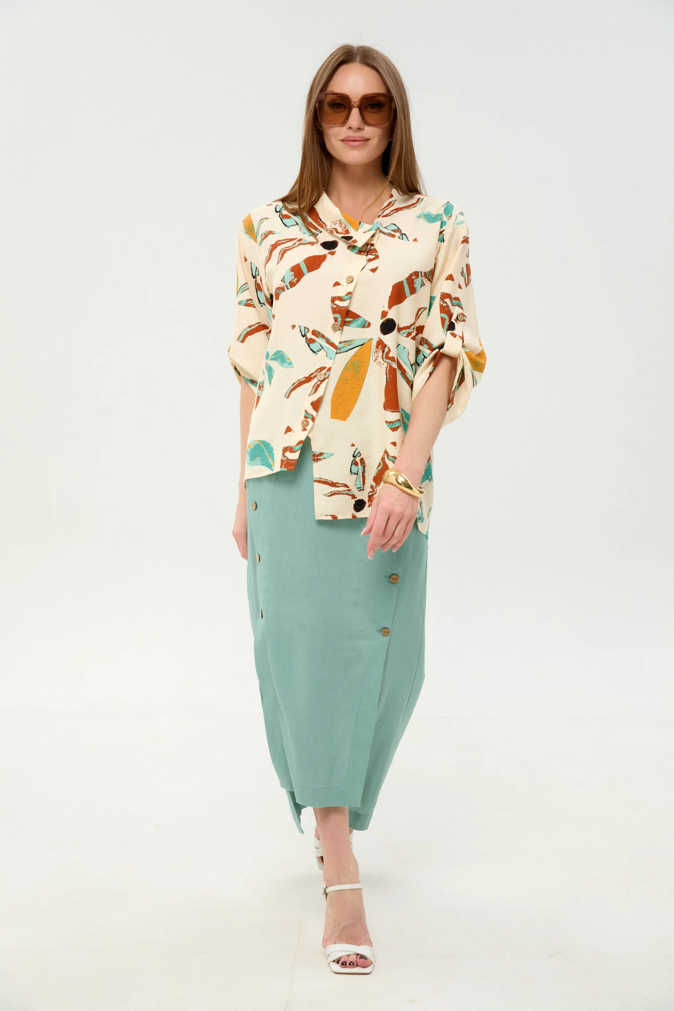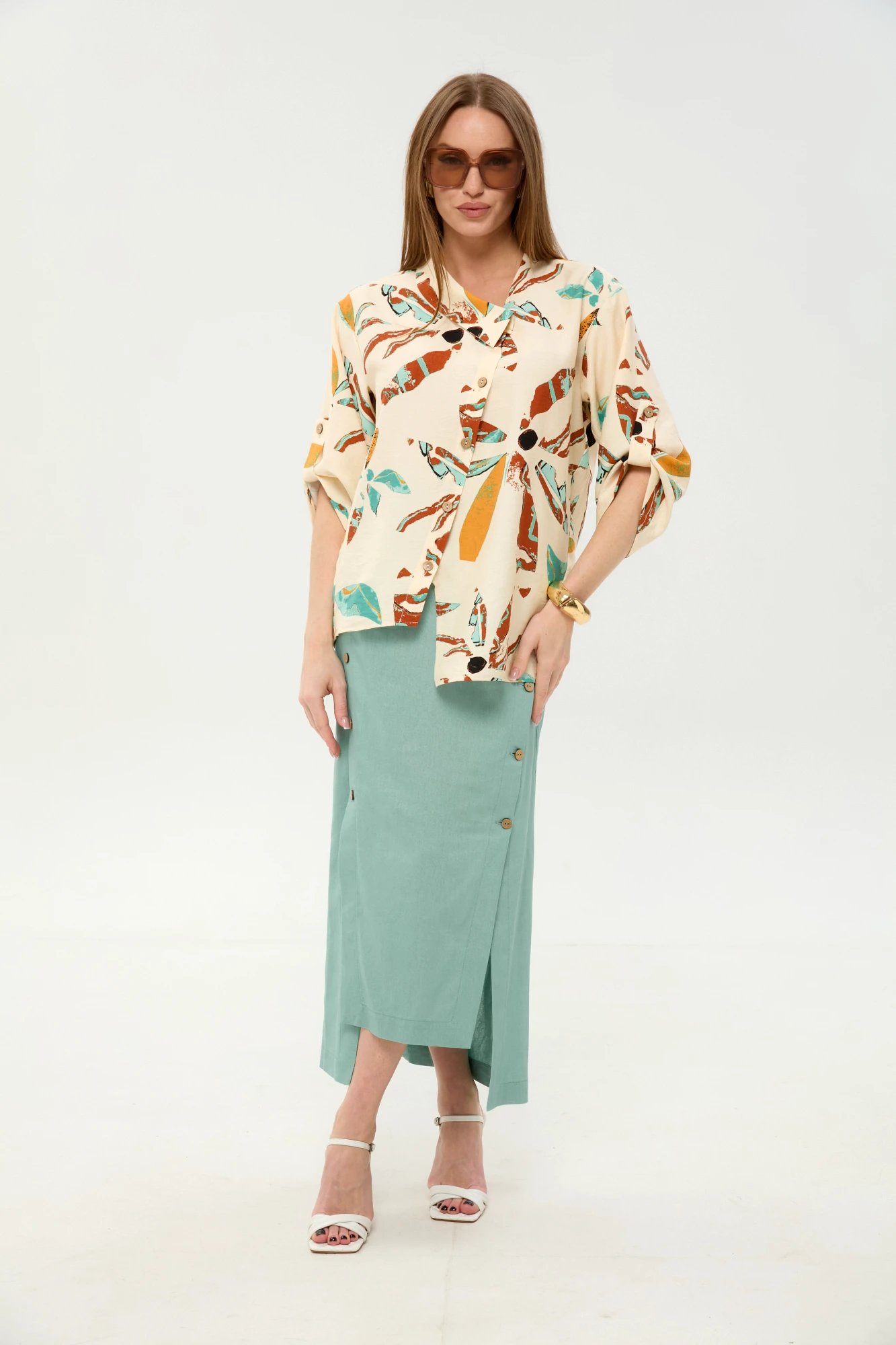 Юбочный костюм NikVa н975 двойка -6 мятный, бохо мультиколор