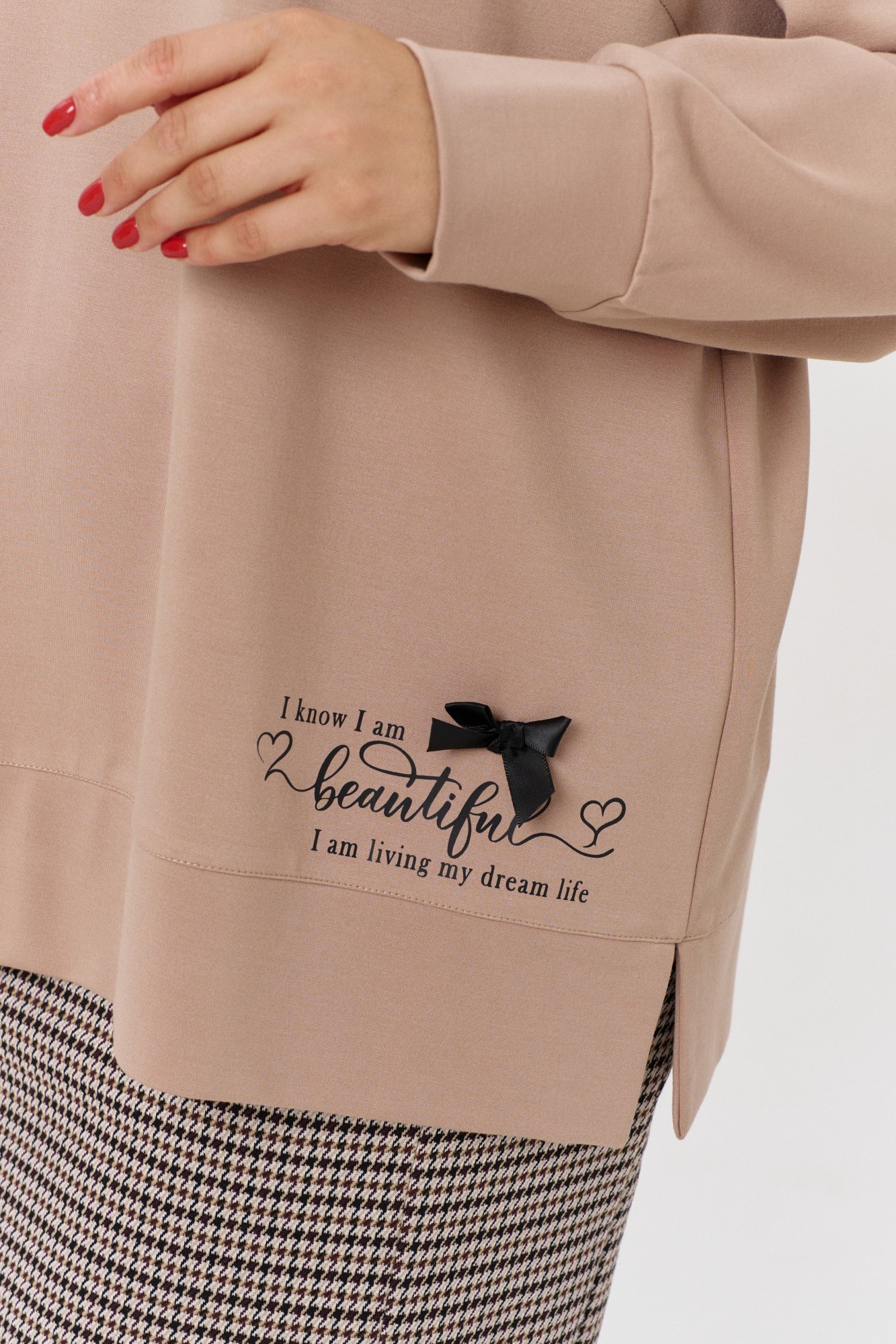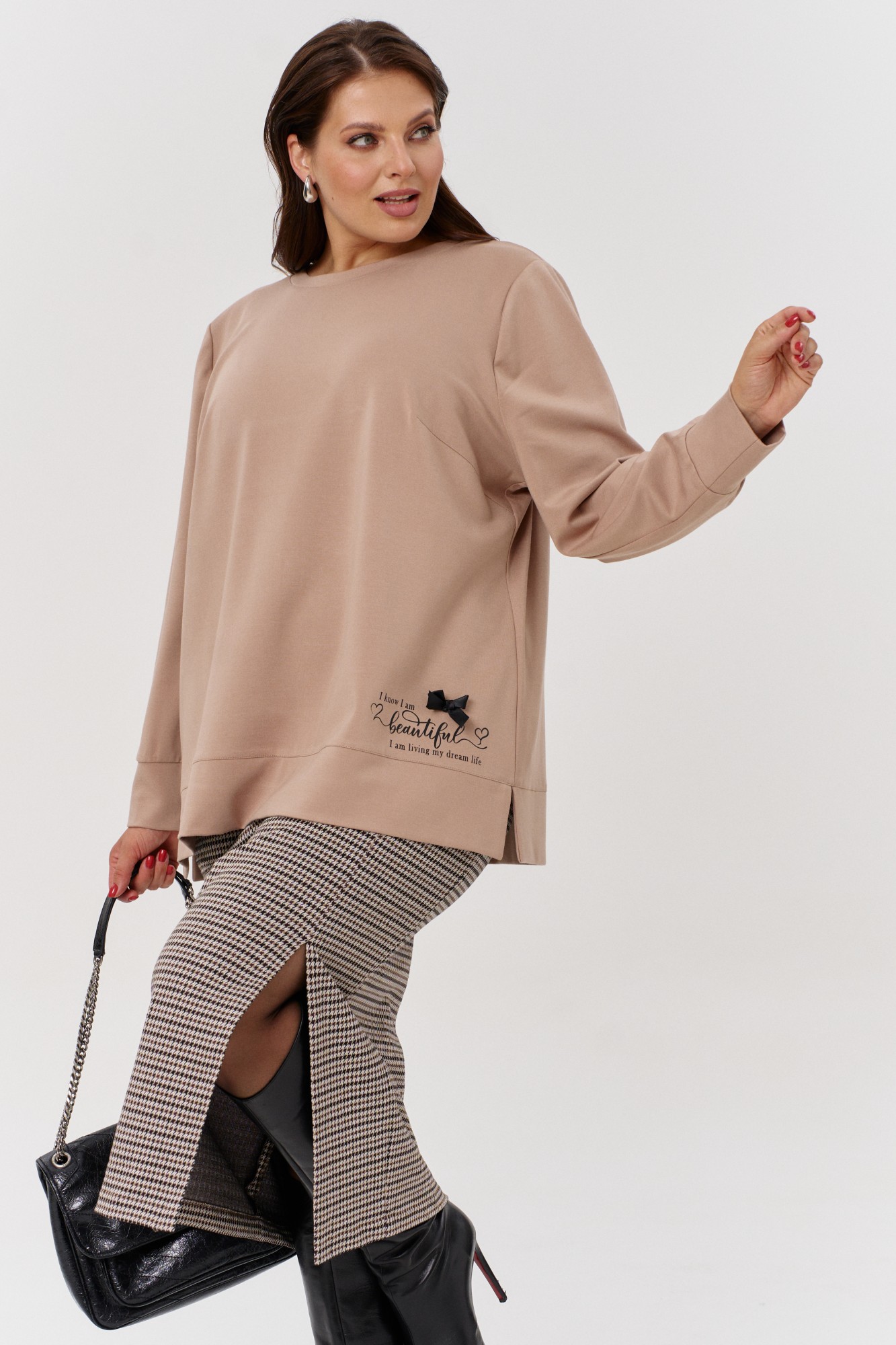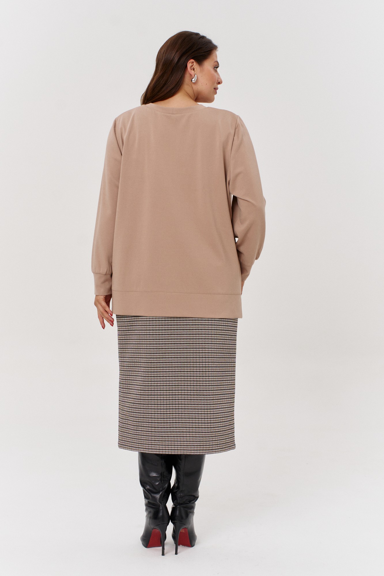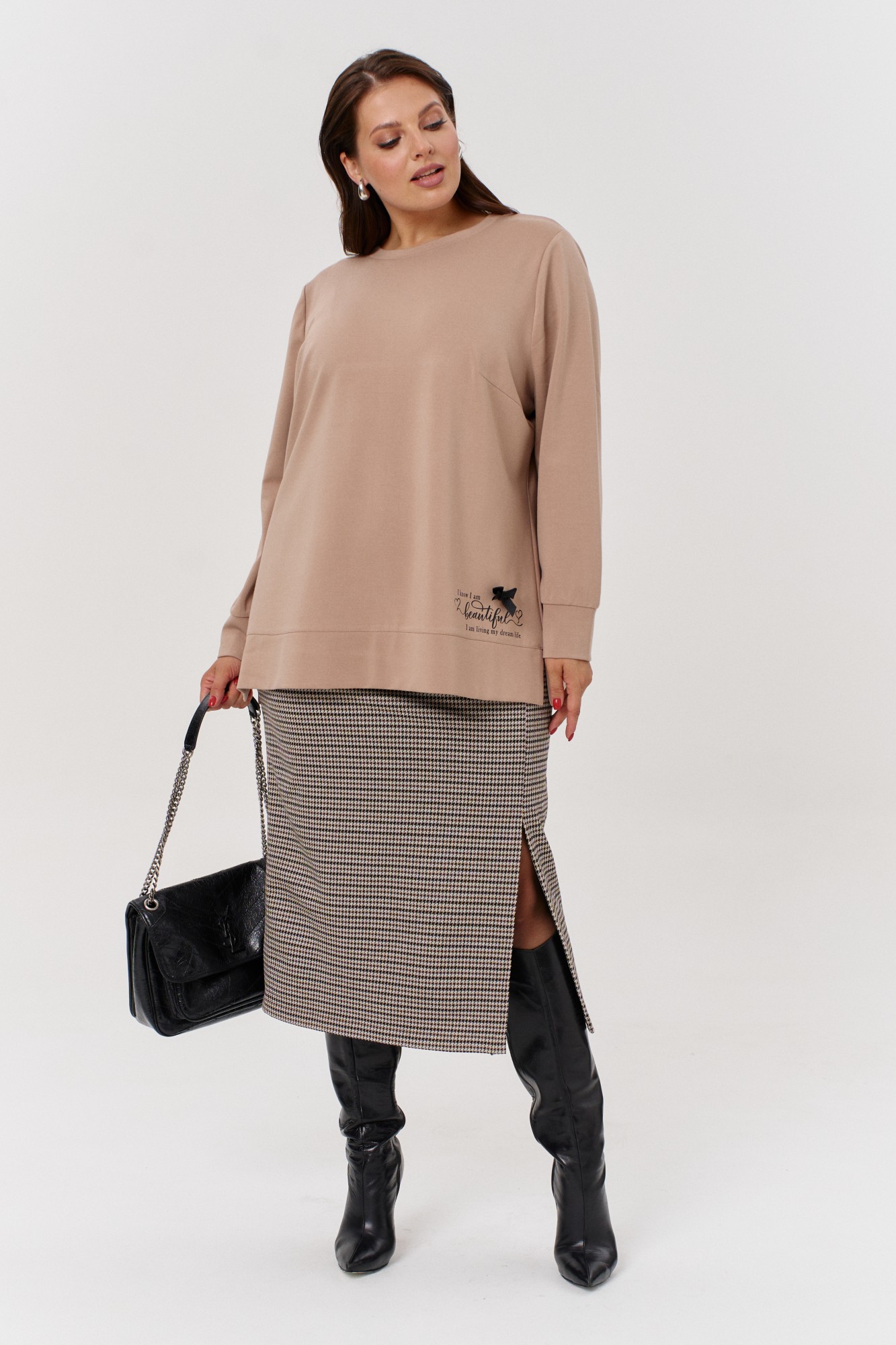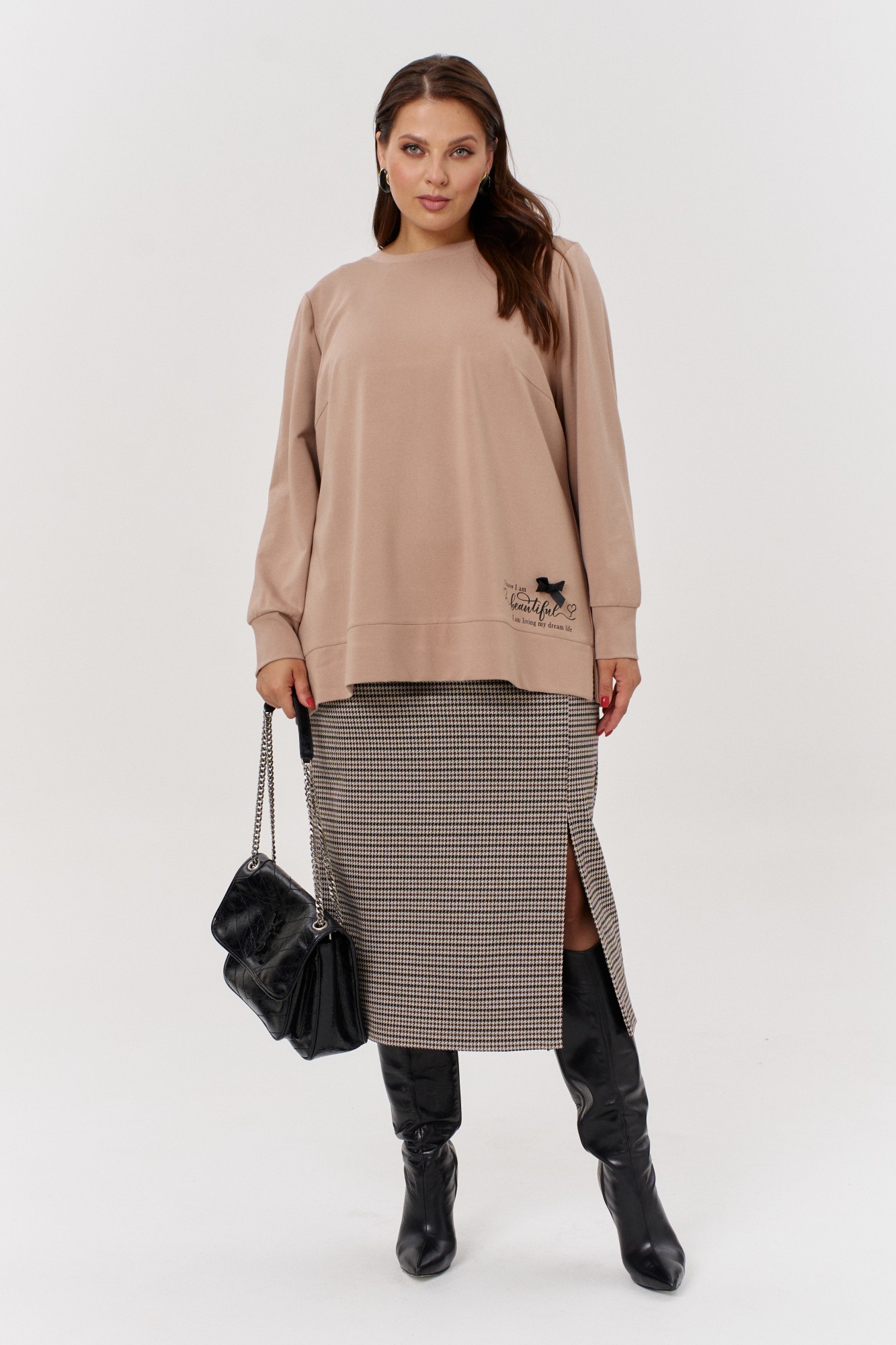 Юбочный костюм OVERYOU 171 бежевый, гусиная лапка с ID товара 408082