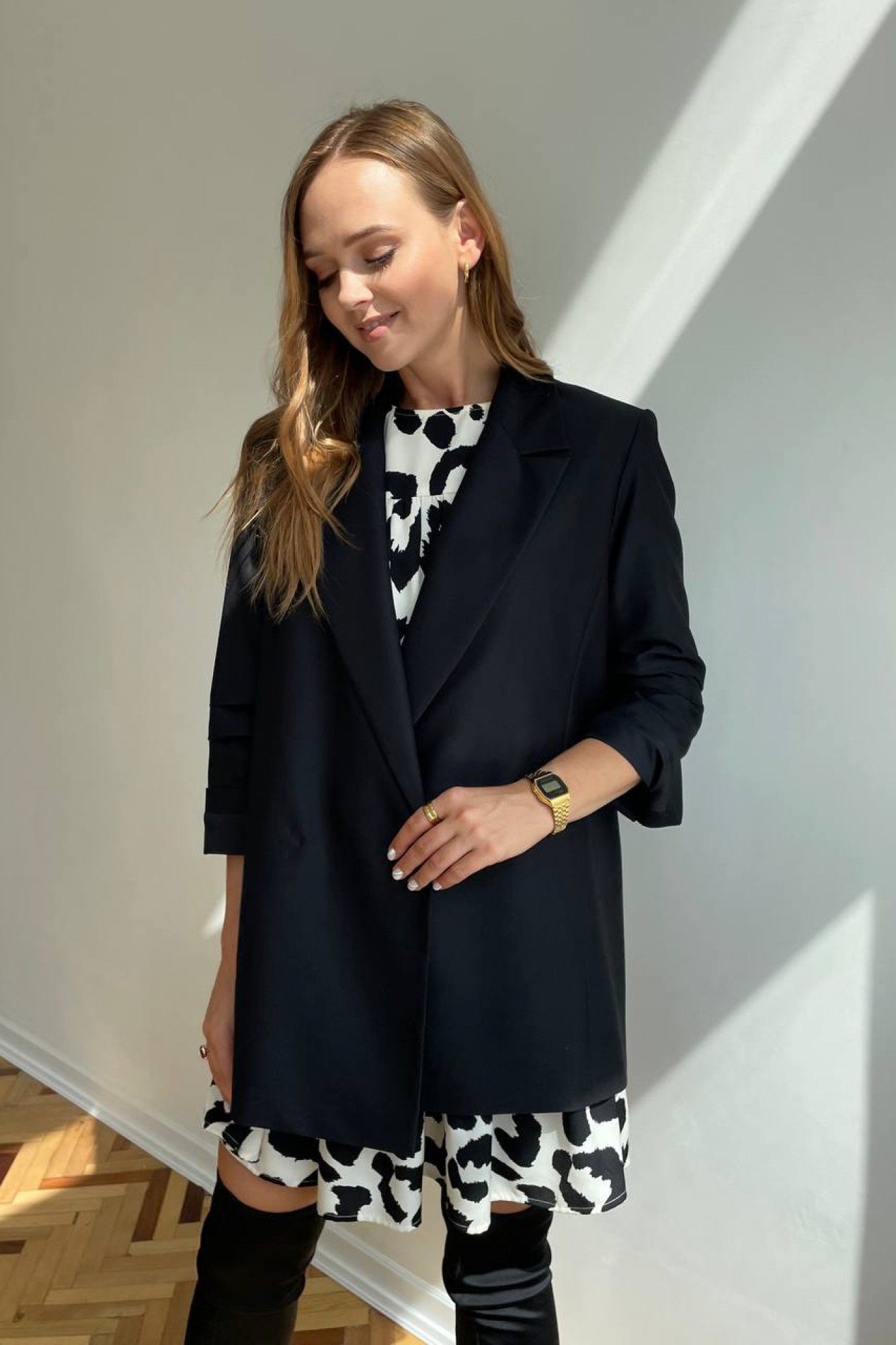 Жакет на подкладке, застегивается на пойтную кнопку. Ремень в комплекте.