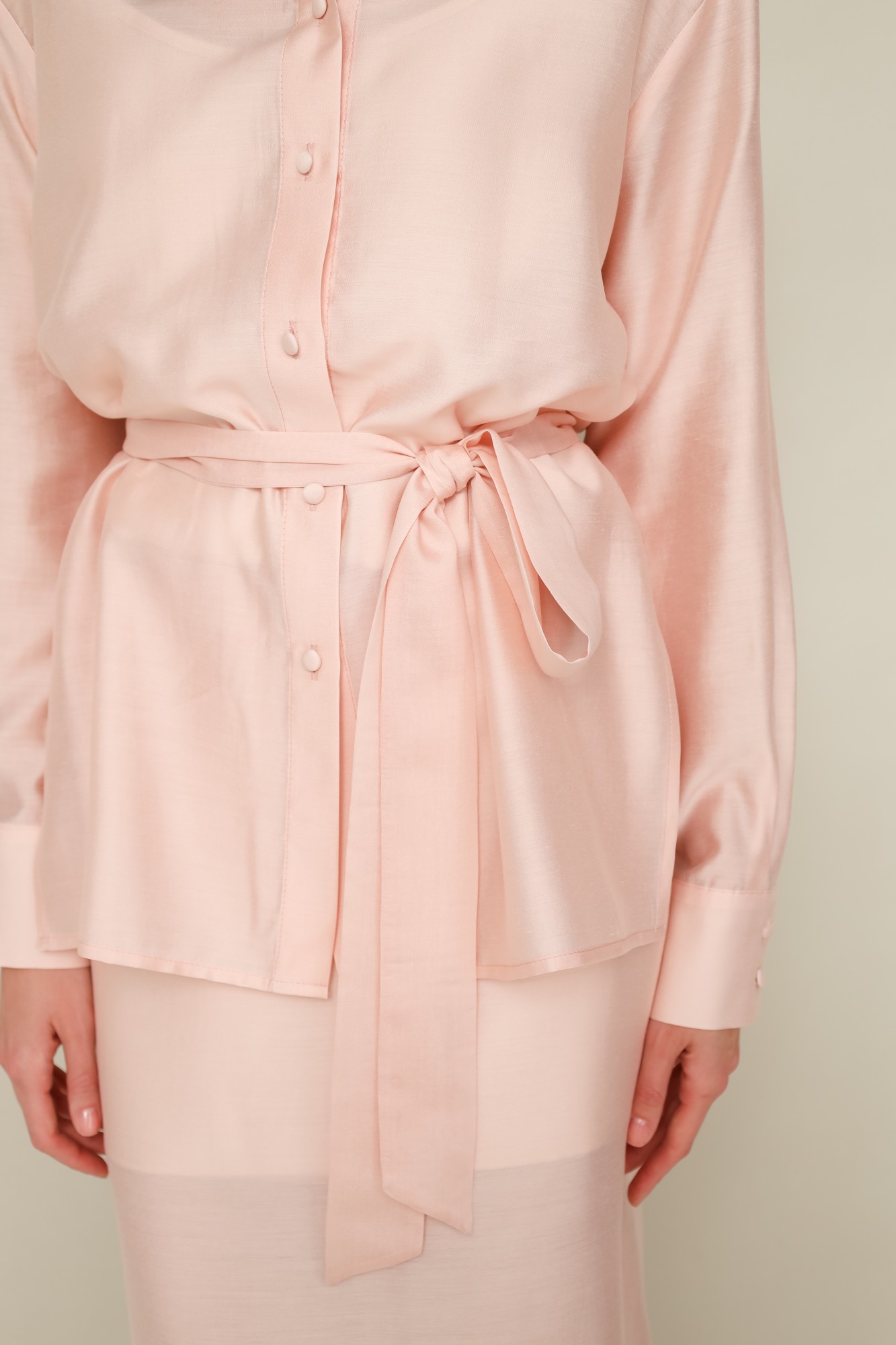 Элегантный 3-предментный комплект, состоящий из топа, блузки и юбки. Топ полуприлегающего силуэта, выполнен из струящейся ткани с матовым блеском. Бретели регулируются по длине. Блузка и юбка, выполнены из вискозного полотна. Блузка прямого кроя, горловина с рубашечным воротником на отрезной стойке, центральная застежка на петли и обтяжные пуговицы. Рукава втачные с манжетами с застежкой на пуговицы. В боковых швах обработаны разрезы. Спинка с отрезной кокеткой и встречной складкой. Юбка на подкладке в длине миди. Притачной пояс с частичной резинкой для регуляции по талии. Застежка в среднем шве по спинке на пуговицу и потайную молнию. Для удобства движения сзади обработана шлица. В комплекте прилагается пояс основной ткани.