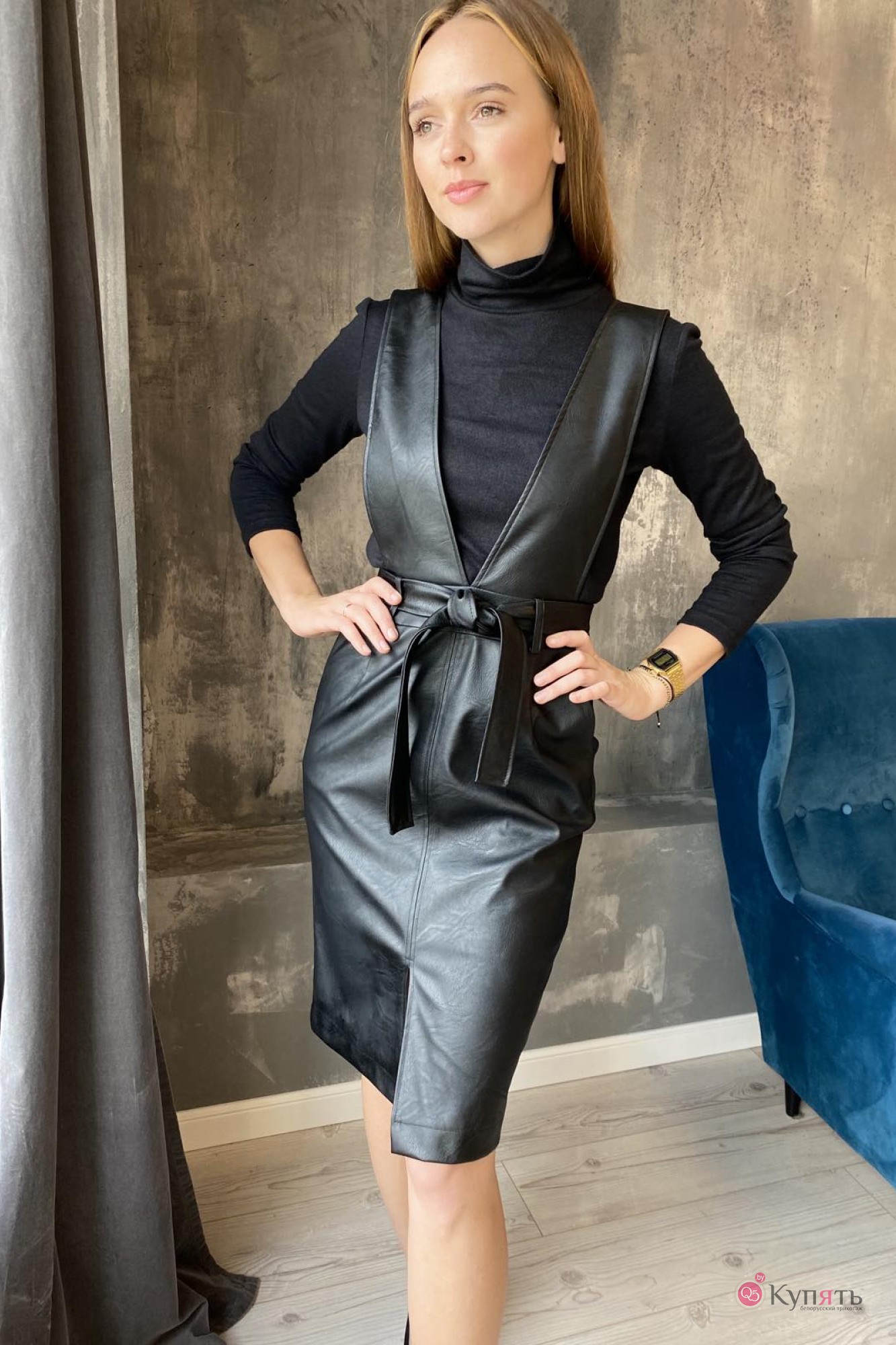 Джемпер:пэ 76%, вискоза 20%, спандекс 4% Платье:пэ 40%, пу 60%