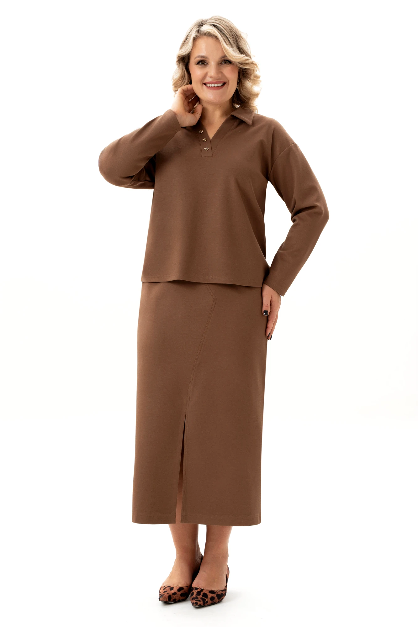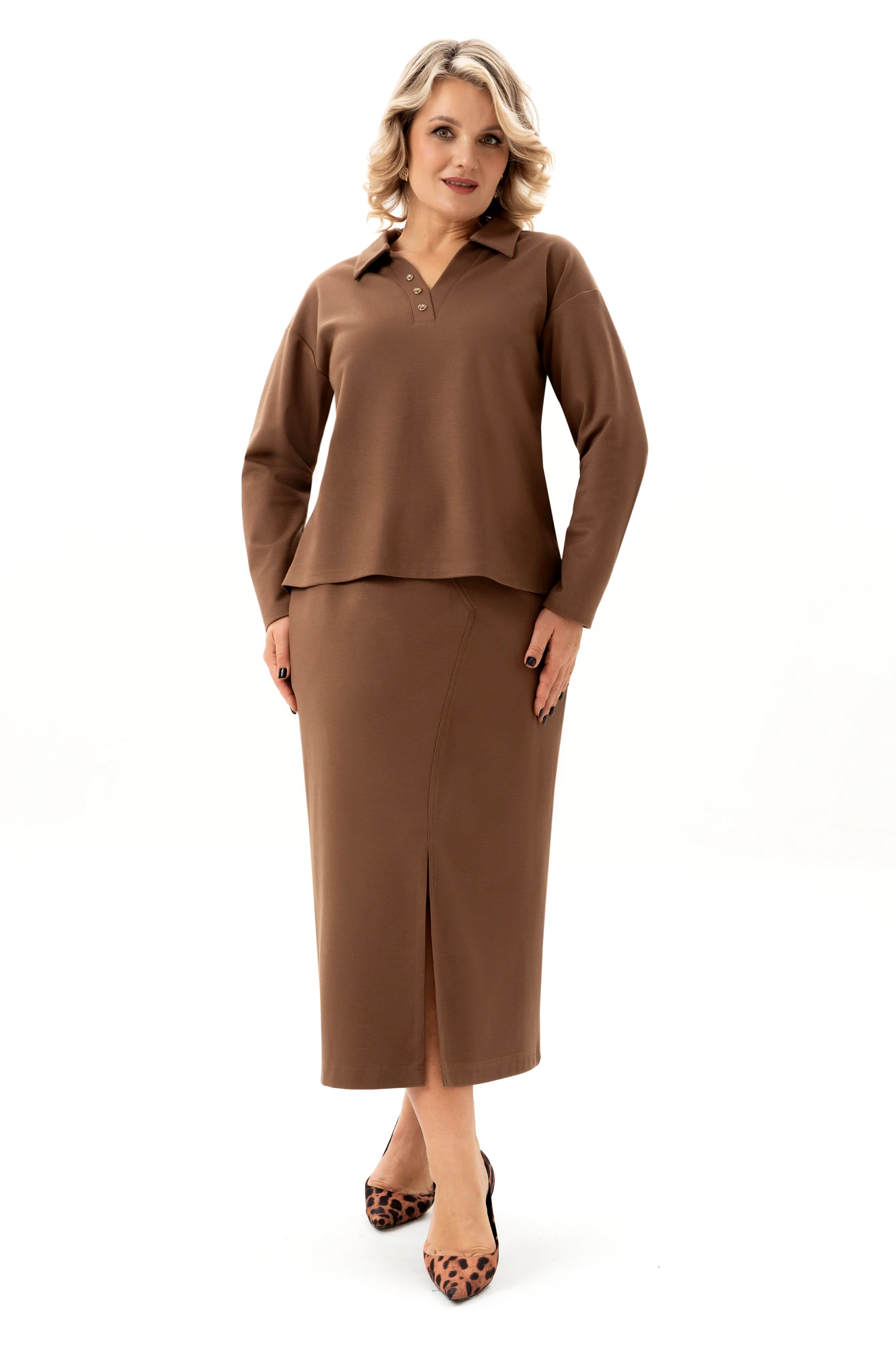 Юбочный костюм ALGRANDA (Novella Sharm) А4106 -4 двойка коричневый