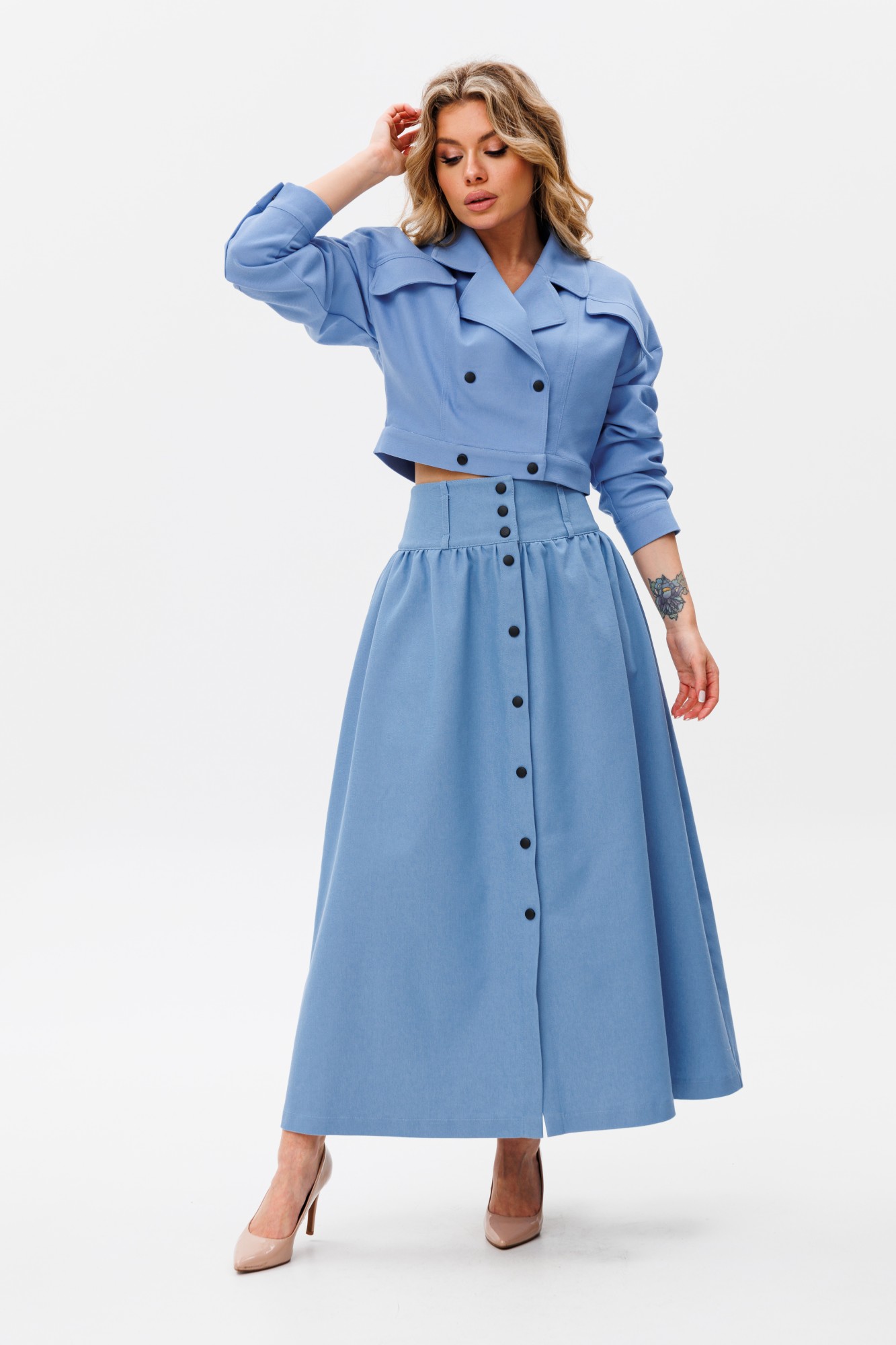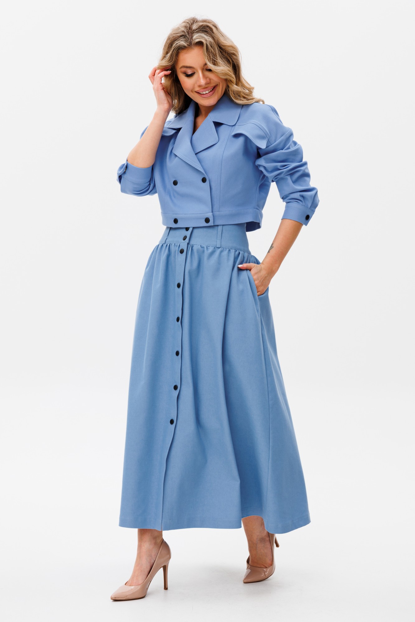 Юбочный костюм AmberA Style 2068 двойка голубой