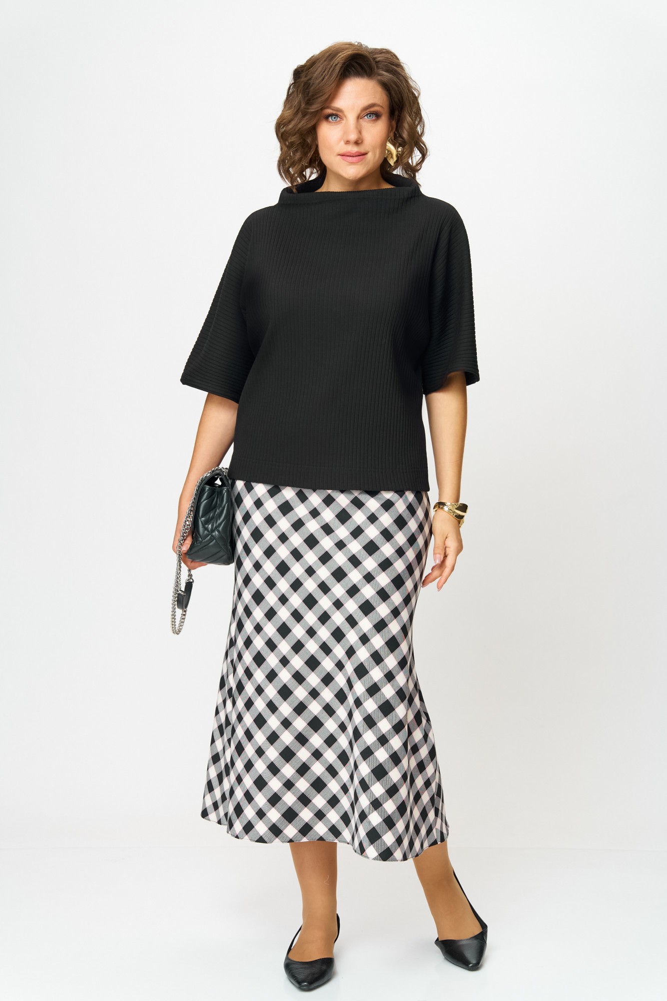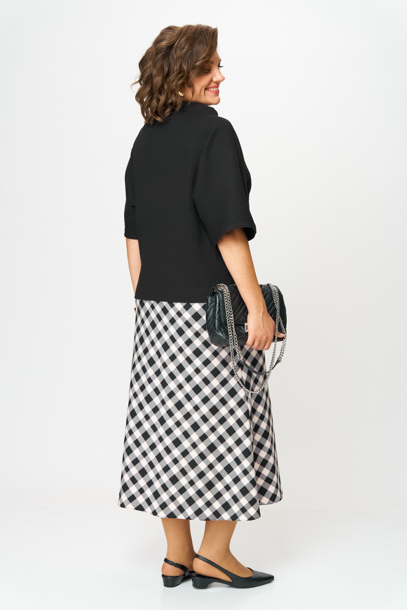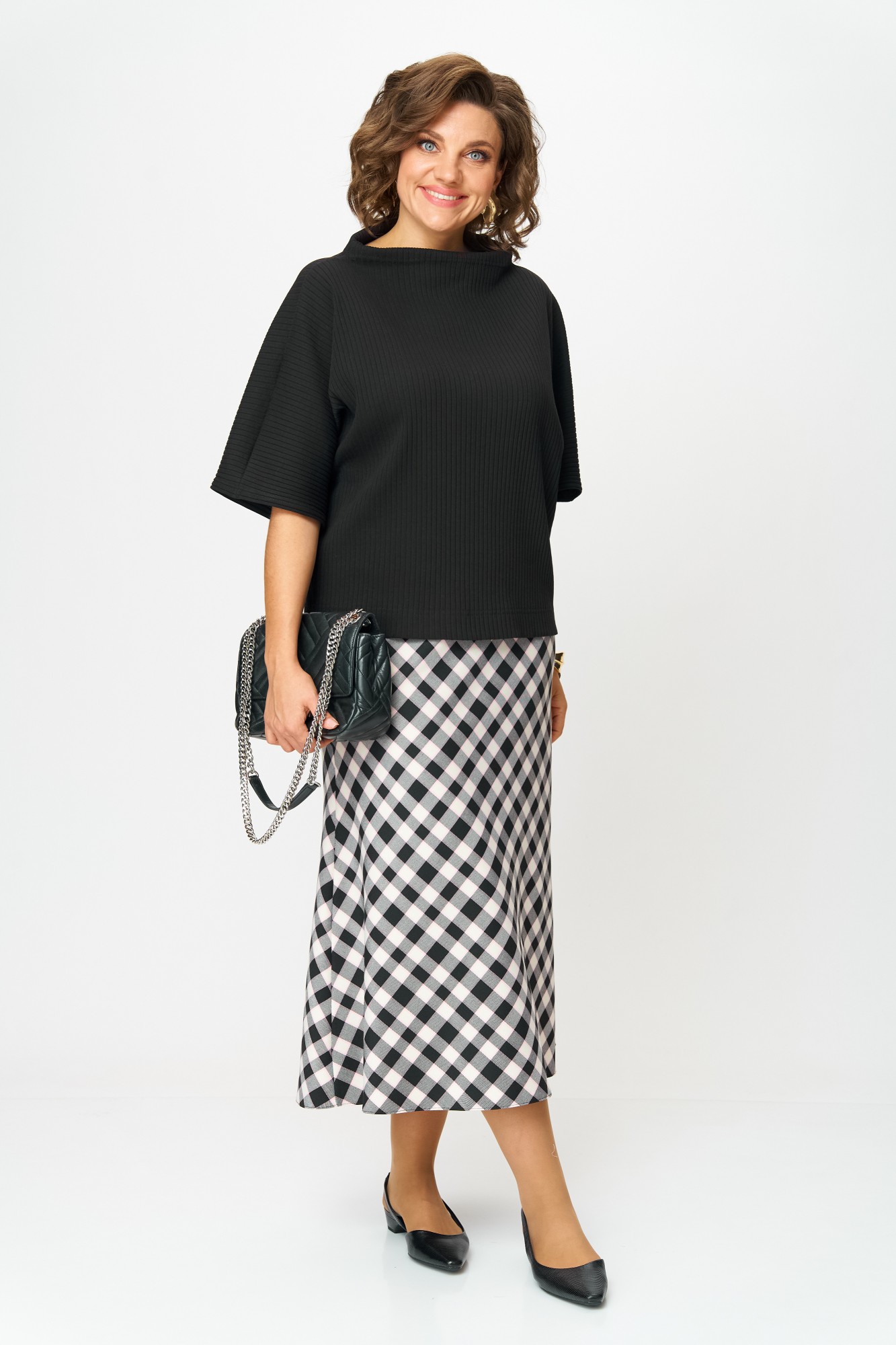 Юбочный костюм Anastasia м-1267 черный, клетка