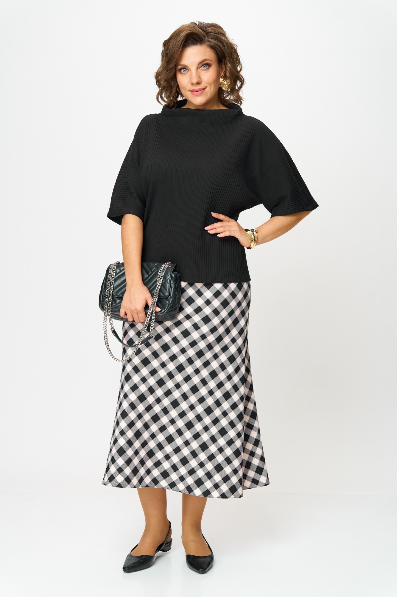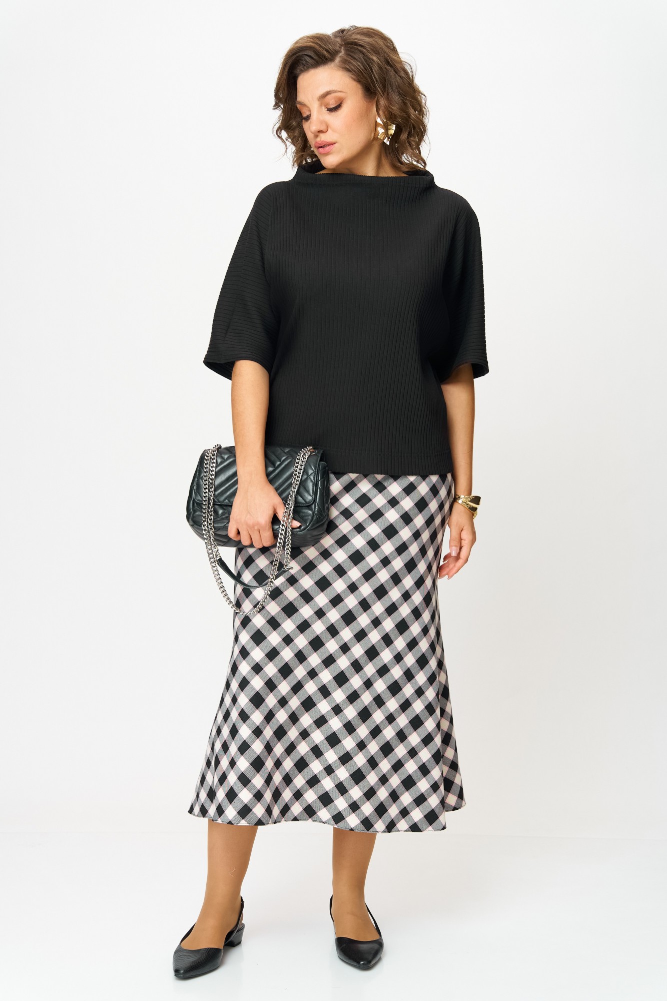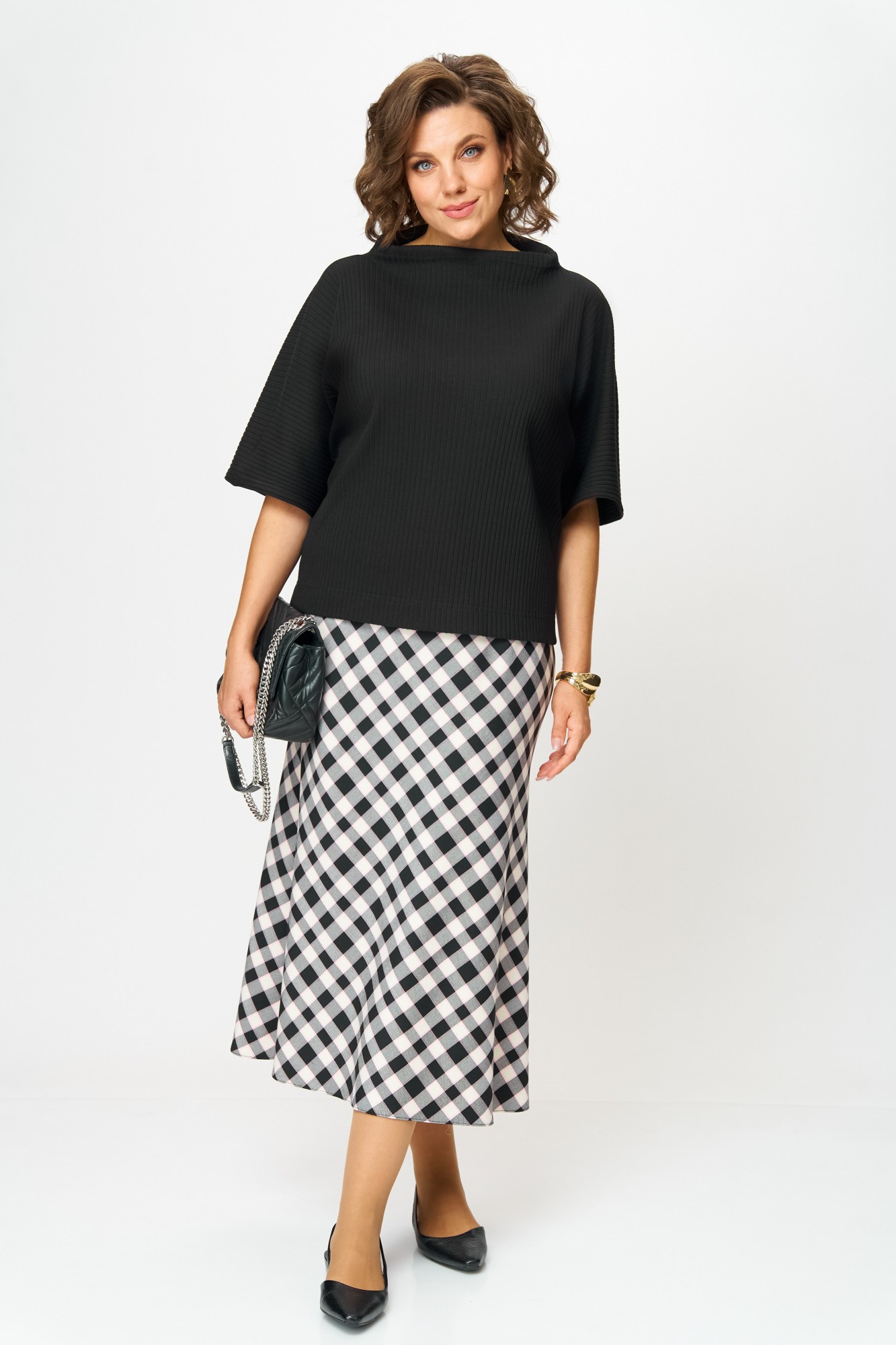 Юбочный костюм Anastasia м-1267 черный, клетка