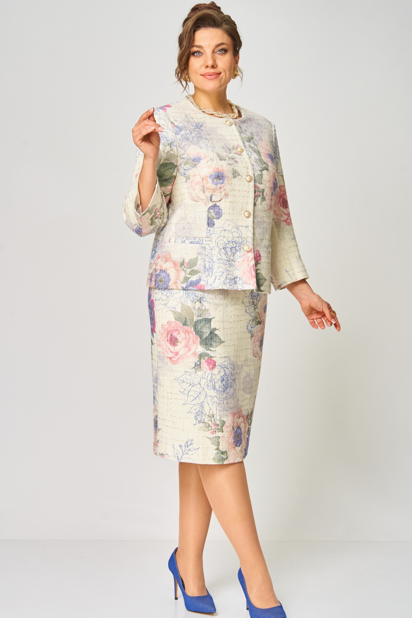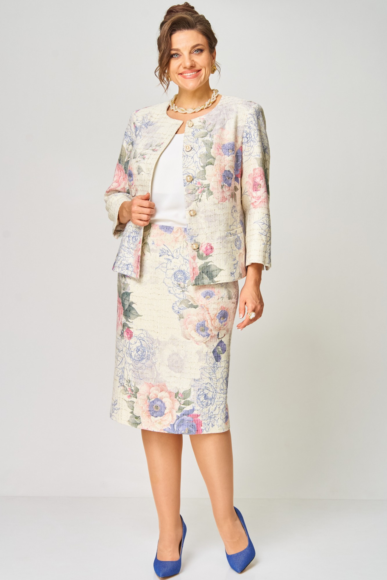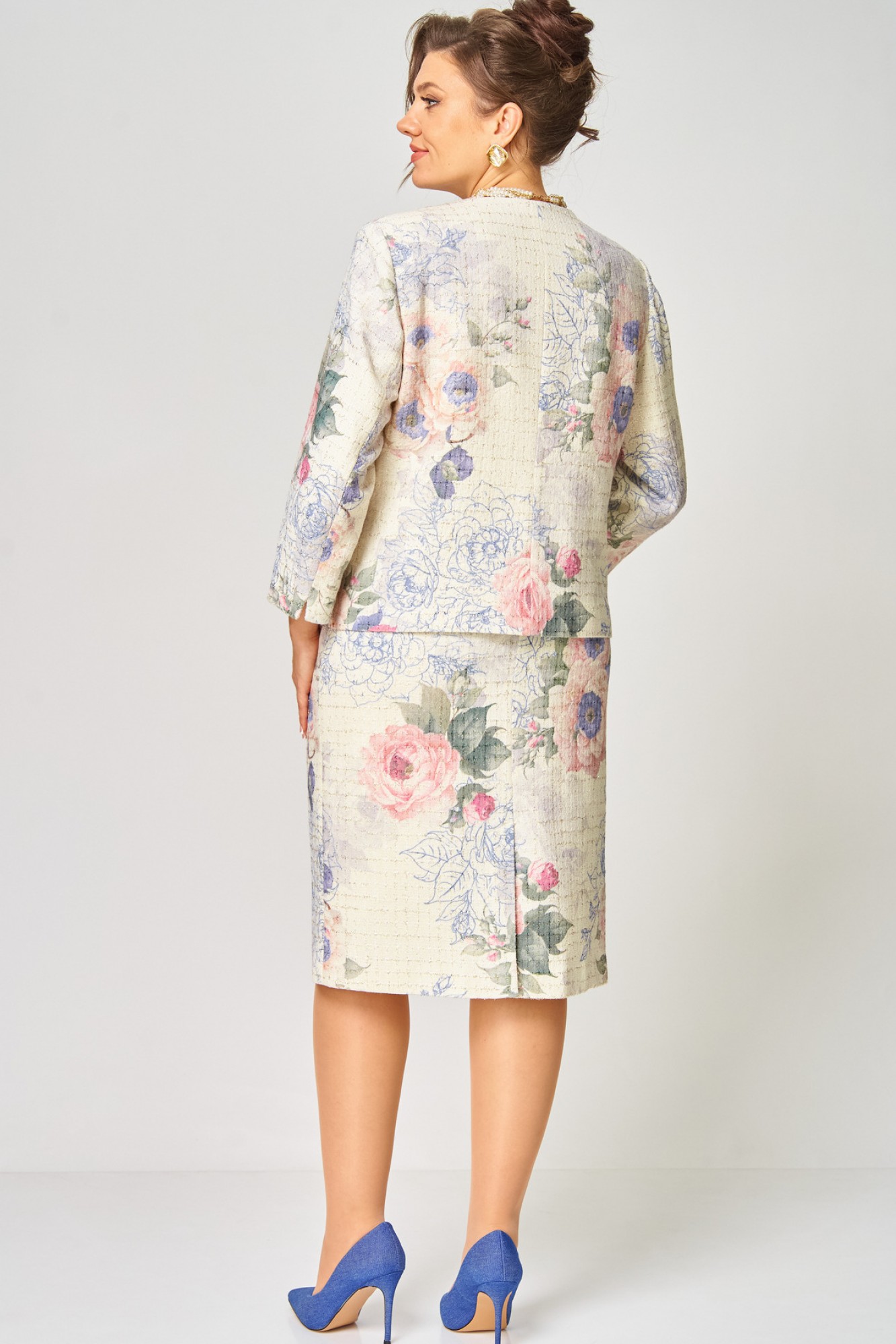 Юбочный костюм БелЭльСтиль 861+557 молочный, цветы