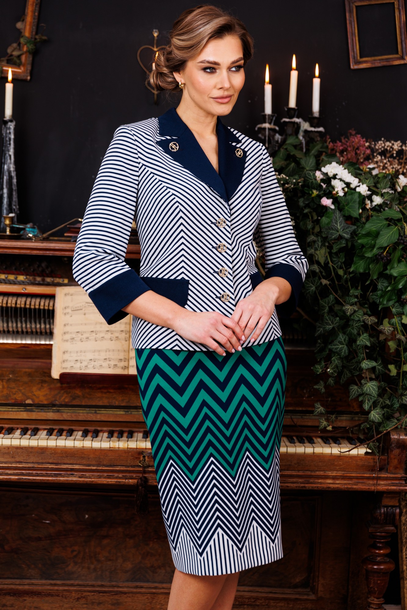 Юбочный костюм Мода Юрс 2845 полоска, зеленый с ID товара 415615