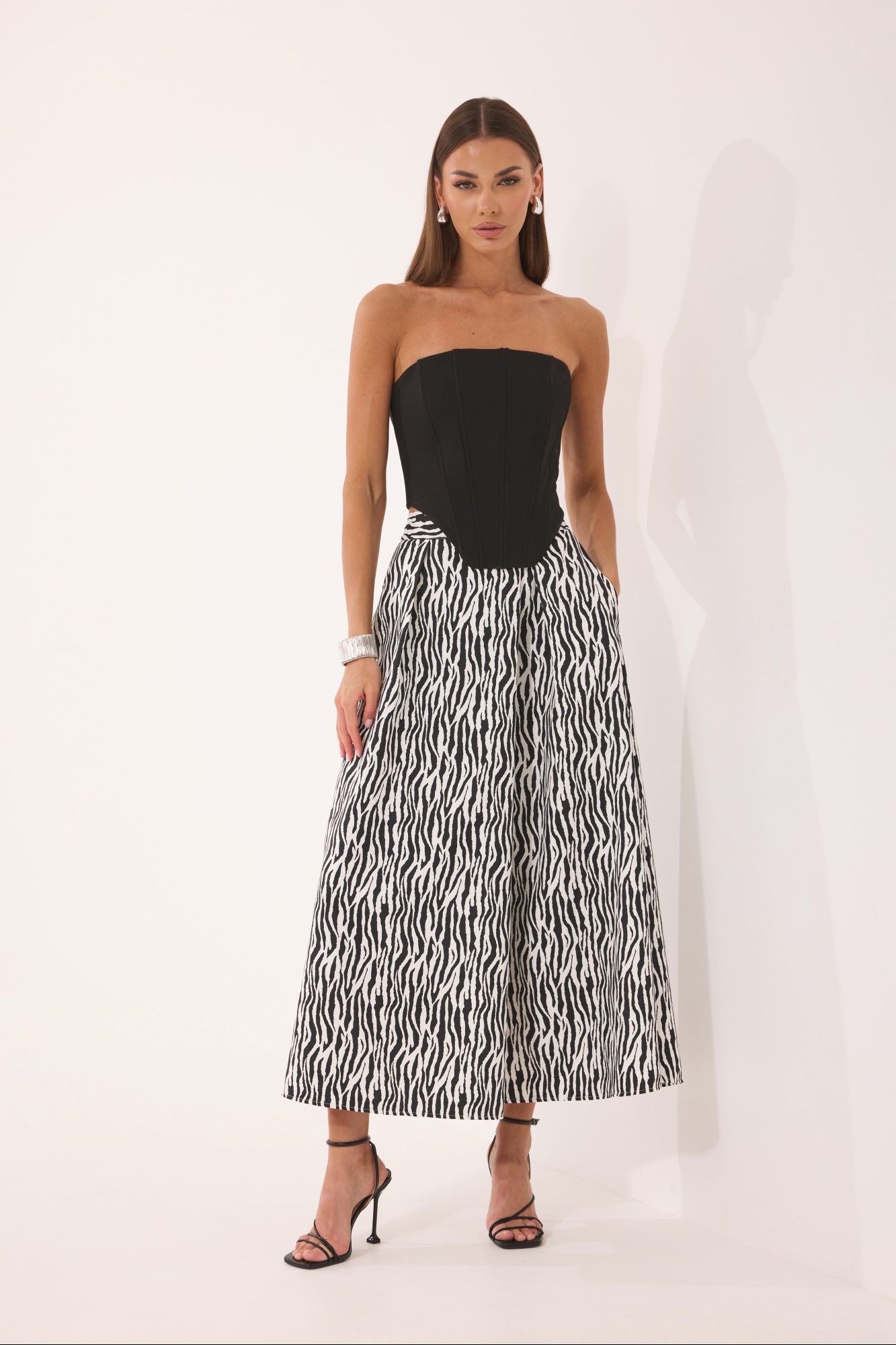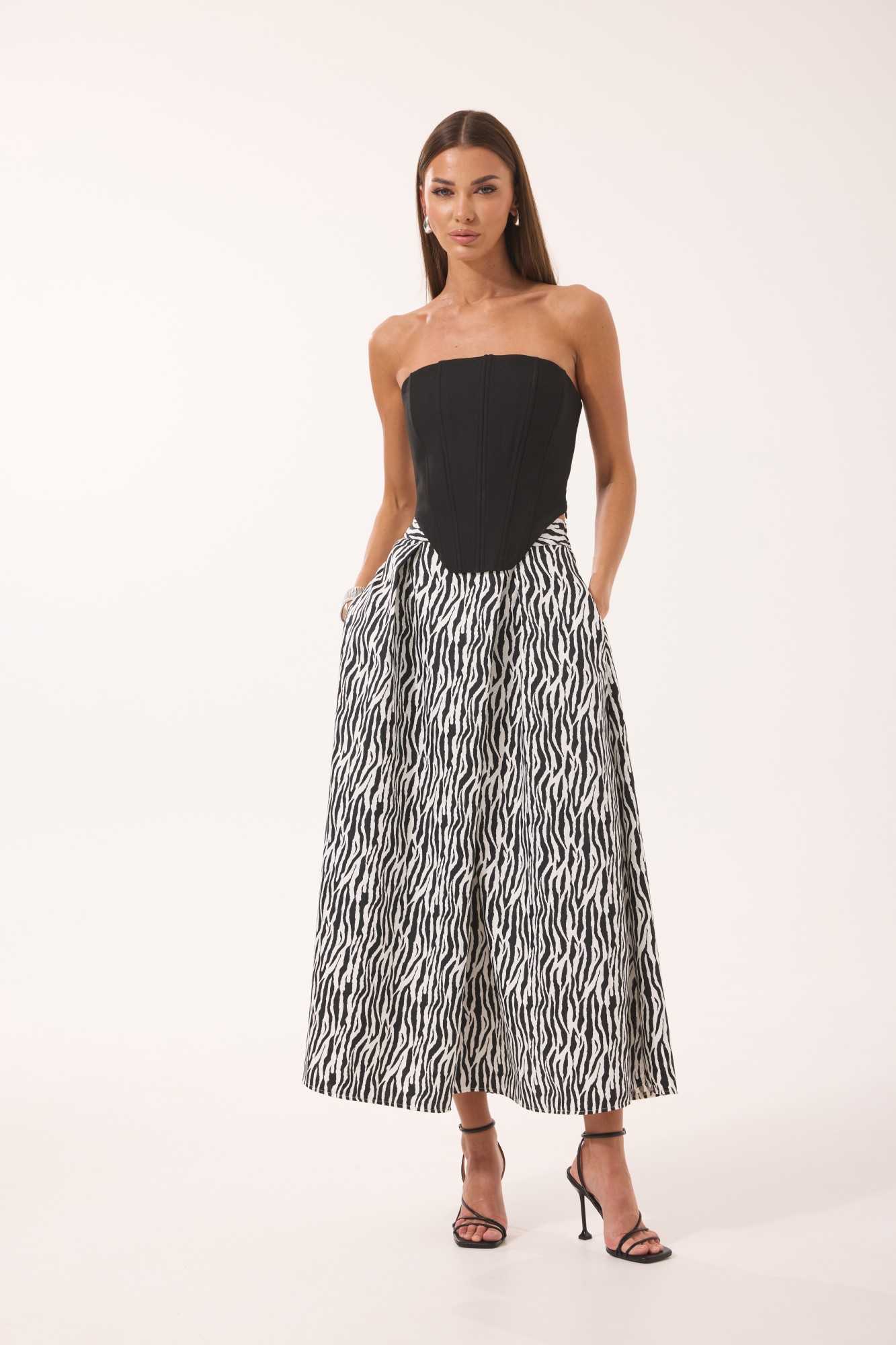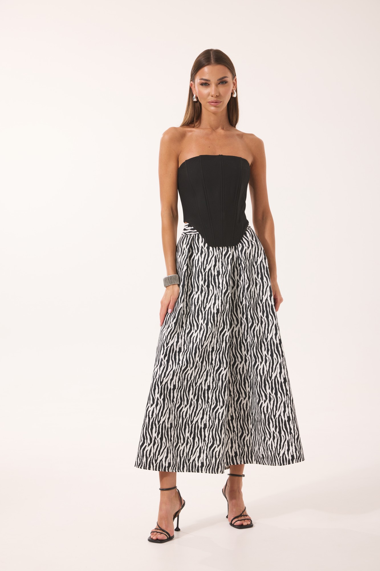 Топ-корсет – полиэстер 68%, вискоза 28%, полиуретан 4%; Юбка – вискоза 70%, полиэстер 30%