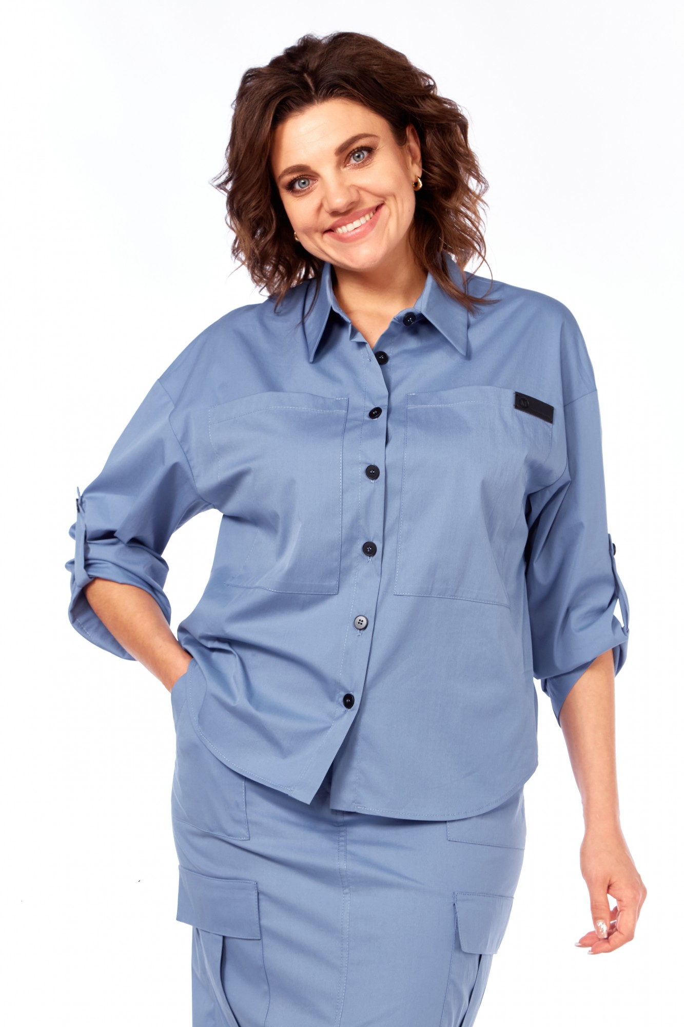 Комплект женский двухпредметный, состоящий из рубашки и юбки выполнен из хлопка. Рубашка свободного кроя со спущенным рукавом длиной ¾ и центральной застежкой на петли-пуговицы. Воротник стояче-отложной с отрезной стойкой. По полочкам расположены накладные карманы. Стильная юбка макси с накладными карманами спереди и сзади и разрезом по среднему шву переда украсит разные типы фигур. Модель с притачным поясом, в задней части которого вставлена резинка, с застежкой на тесьму-молнию и пуговицу. Элегантный монохромный образ, простой, но невероятно удобный и актуальный на каждый день для городской жизни.