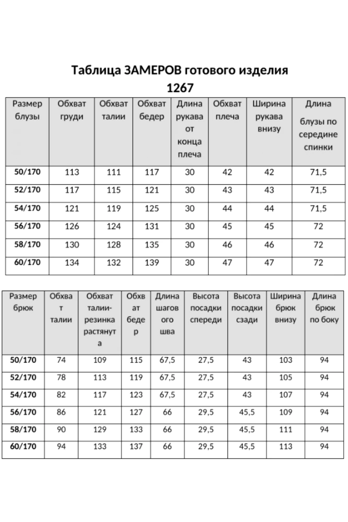 Таблица размеров