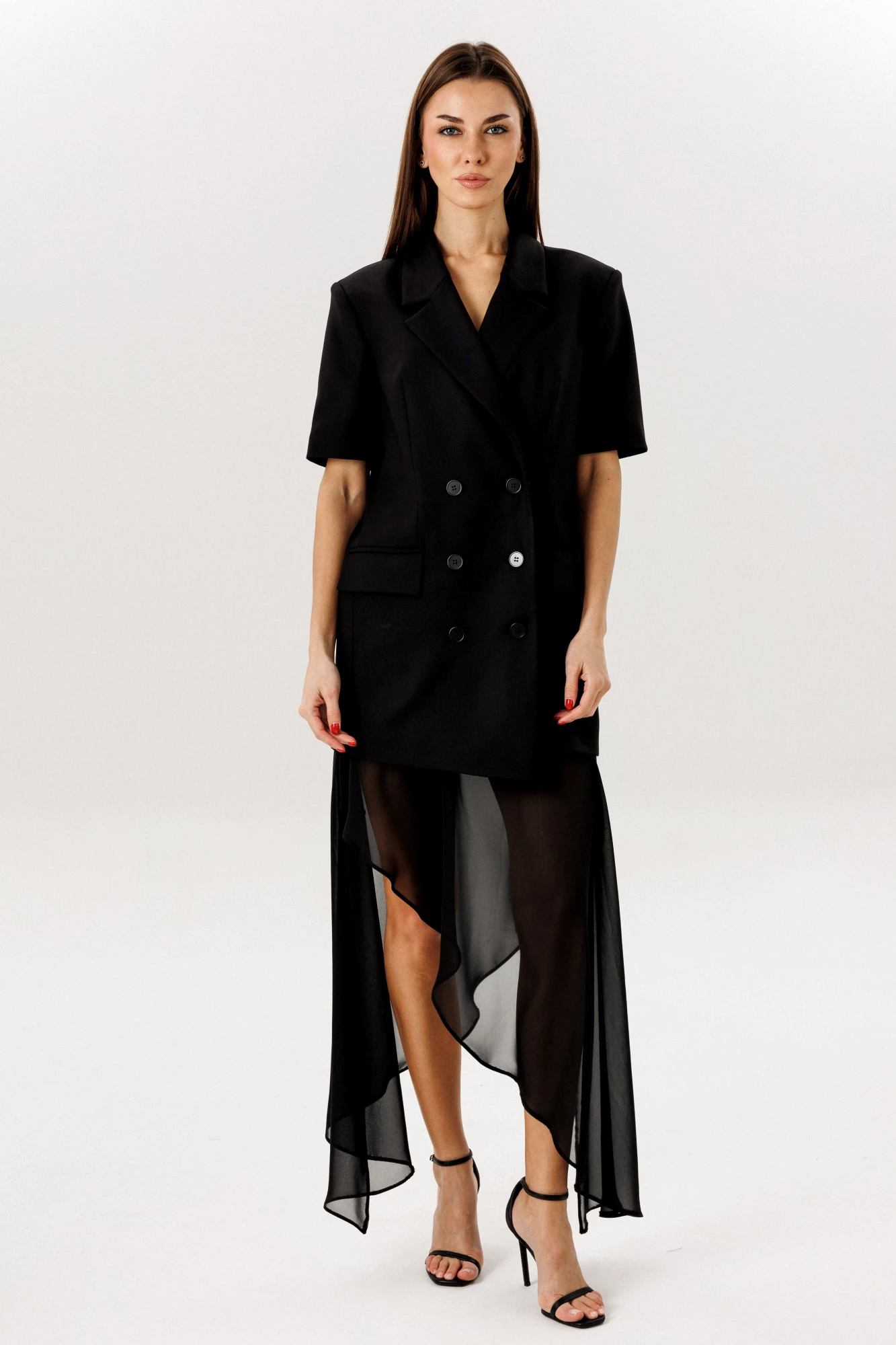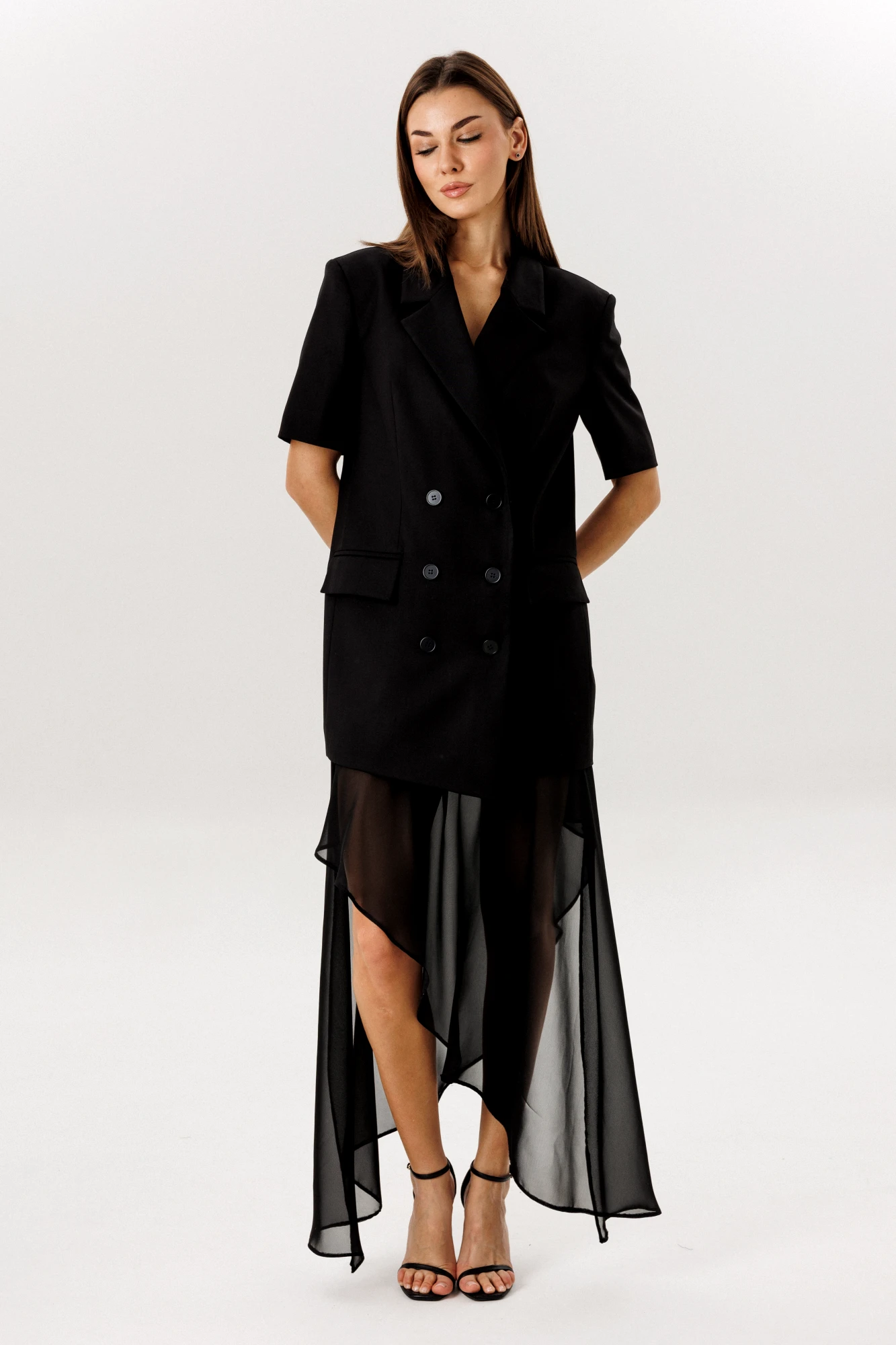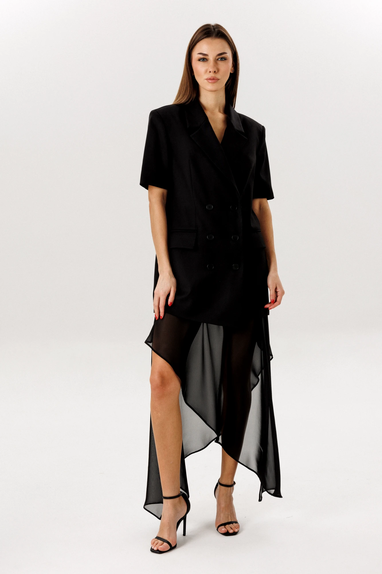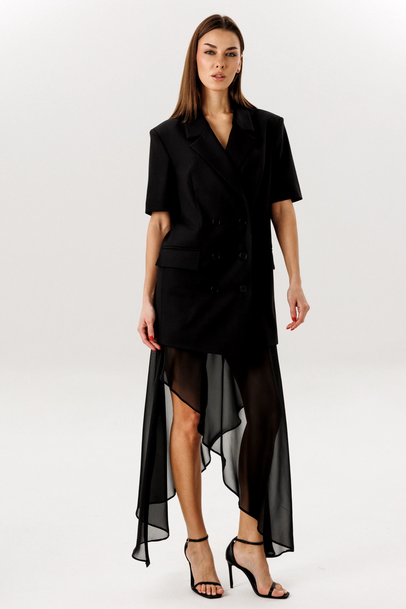 на подкладке 65% полиэстер,32% вискоза, 3% спандекс Юбка: ткань верха -шифон, шортики- креп костюмная 65% полиэстер, 32% вискоза, 3% спандекс