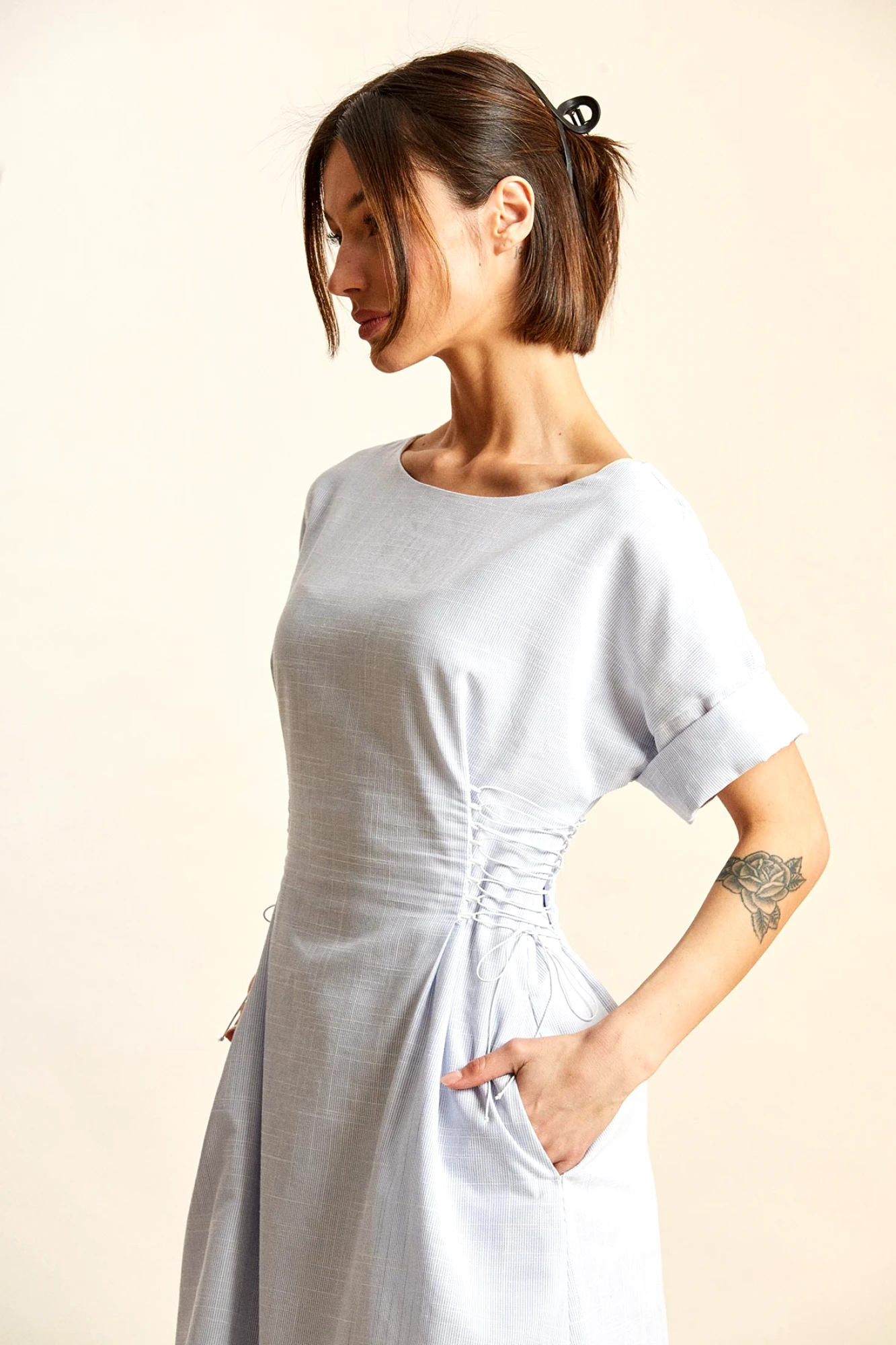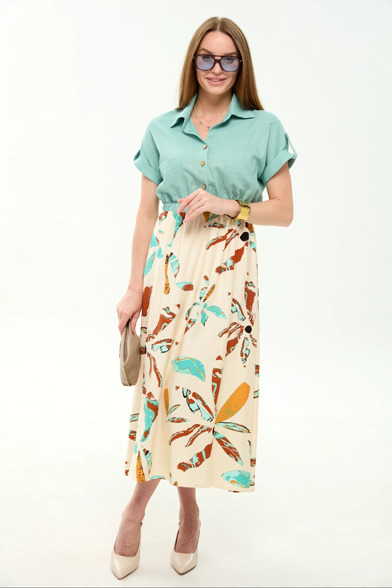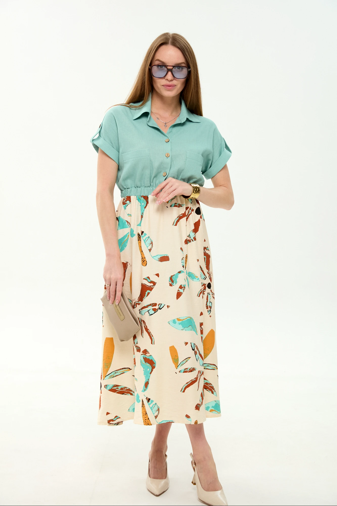 При создании платья могут использоваться различные ткани, как натуральные, так и синтетические, а также их комбинация. Для летнего сезона активно применяются легкие ткани.