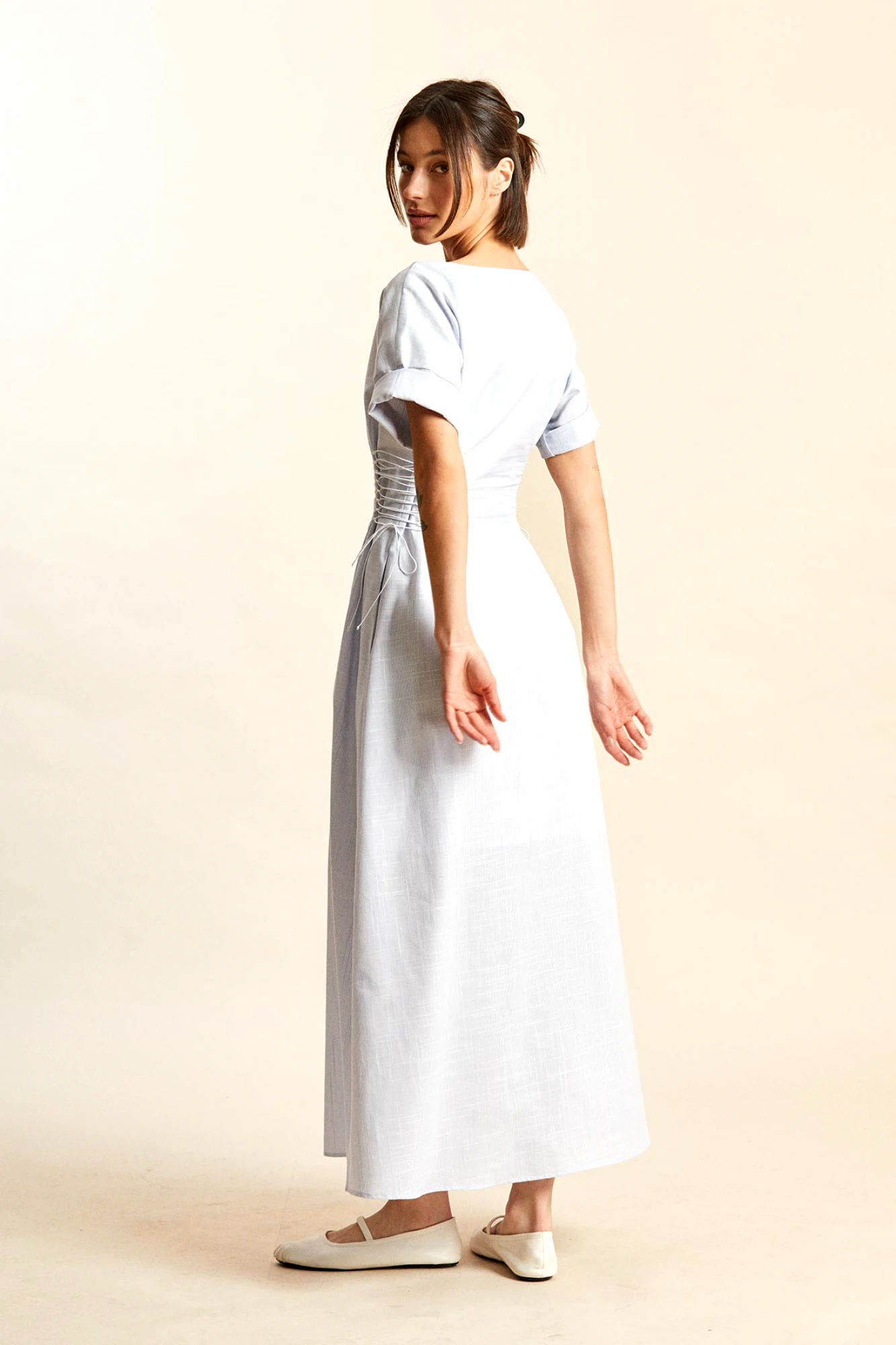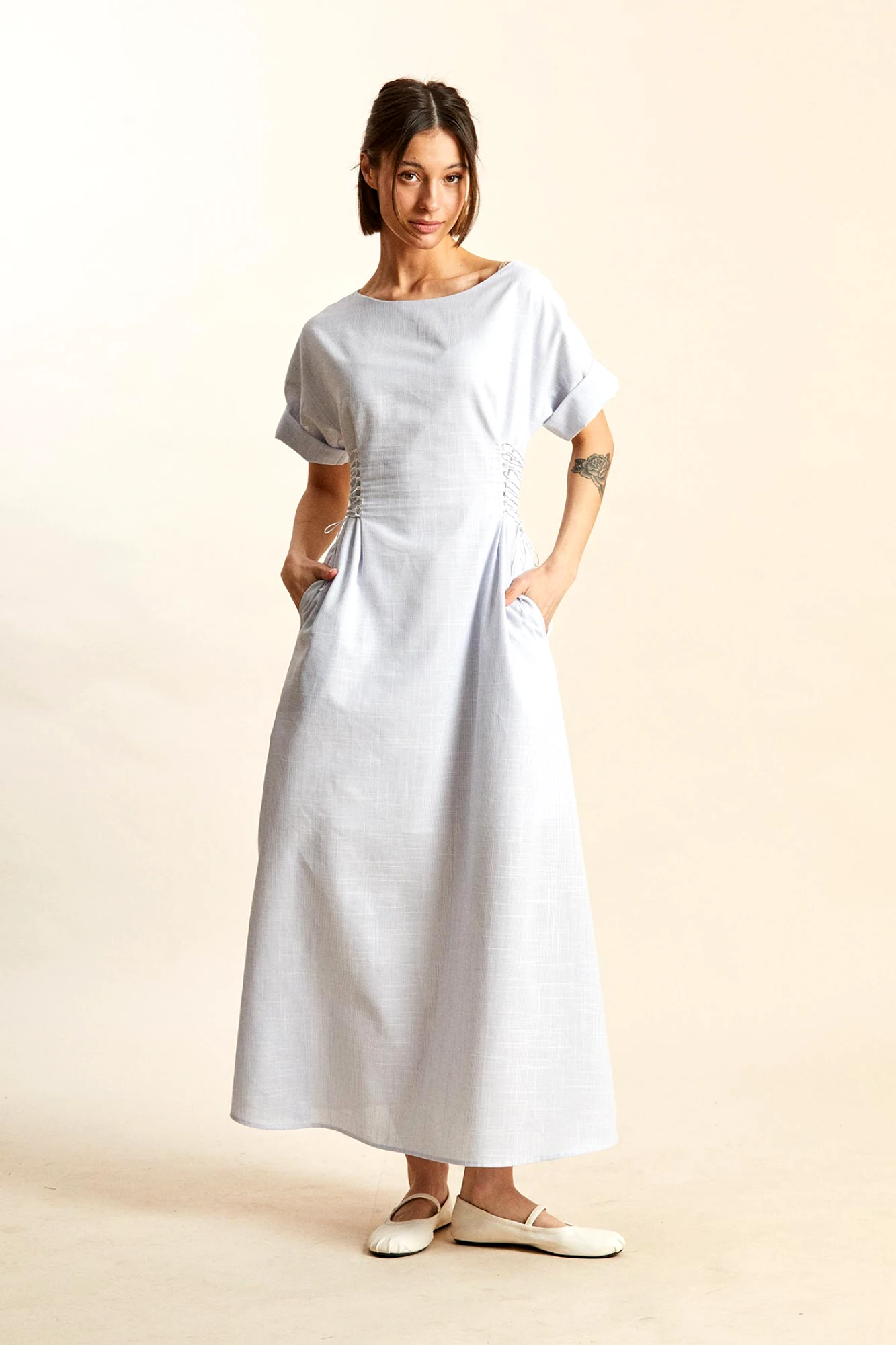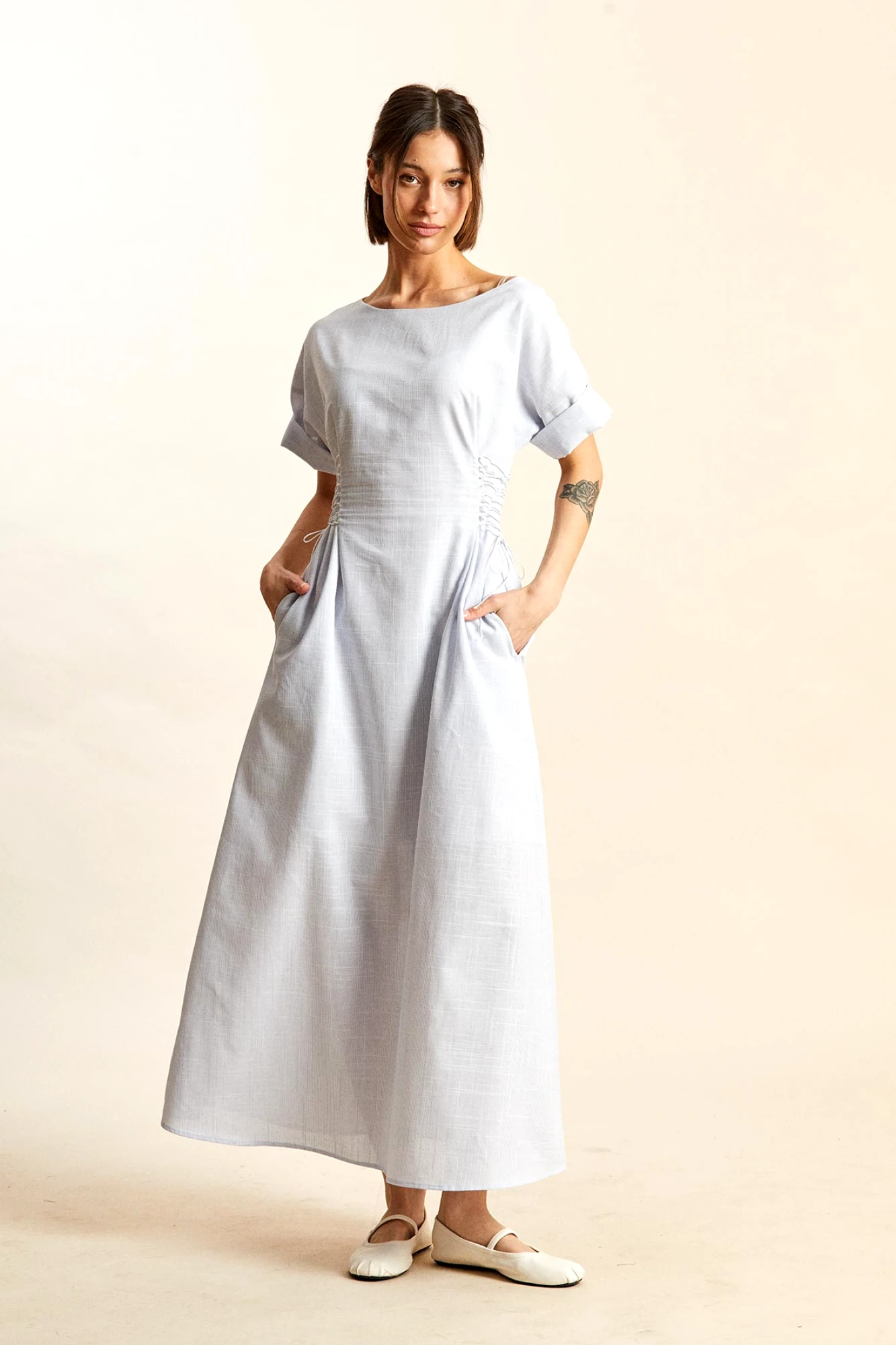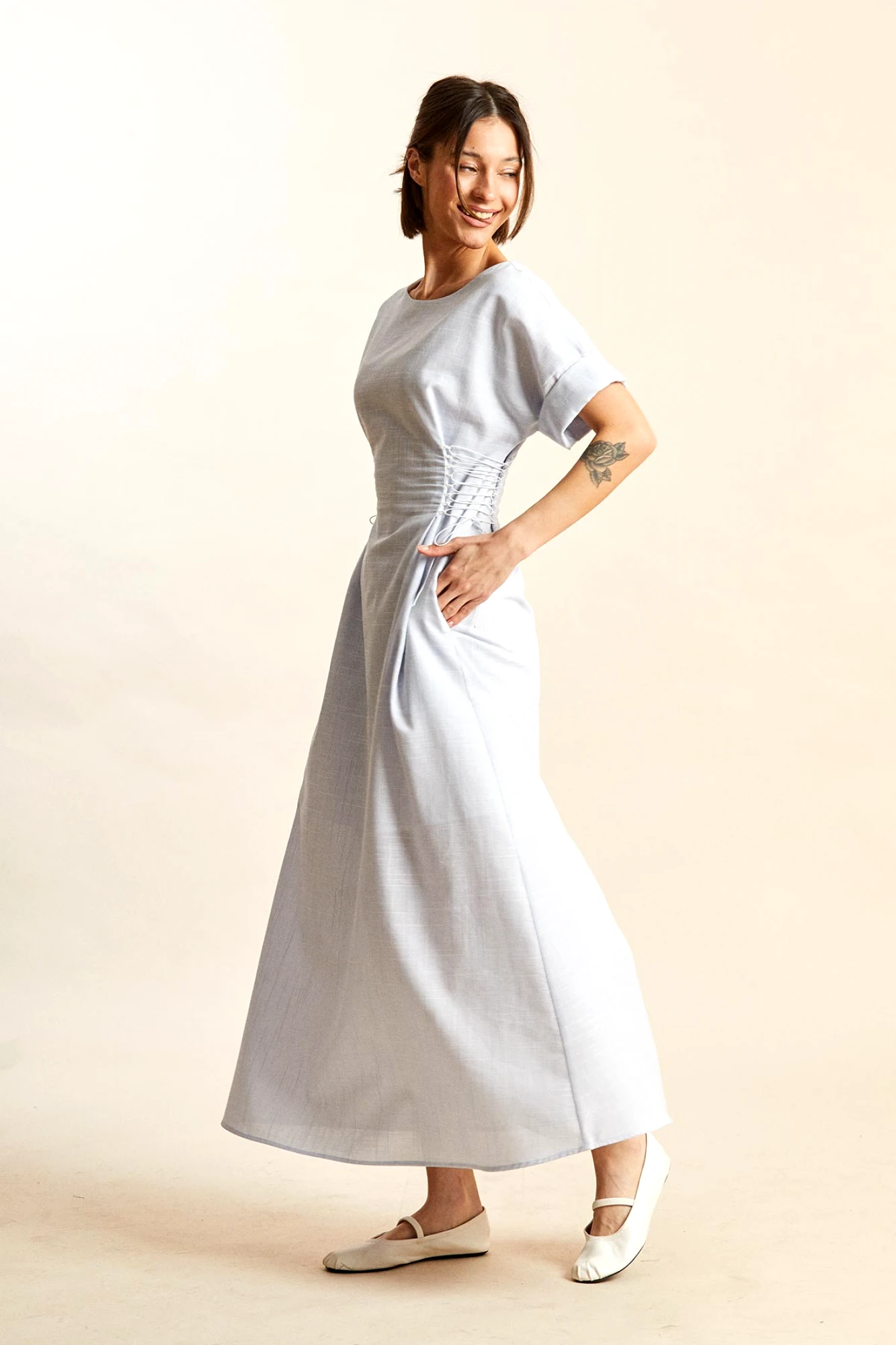 При создании платья могут использоваться различные ткани, как натуральные, так и синтетические, а также их комбинация. Для летнего сезона активно применяются легкие ткани.