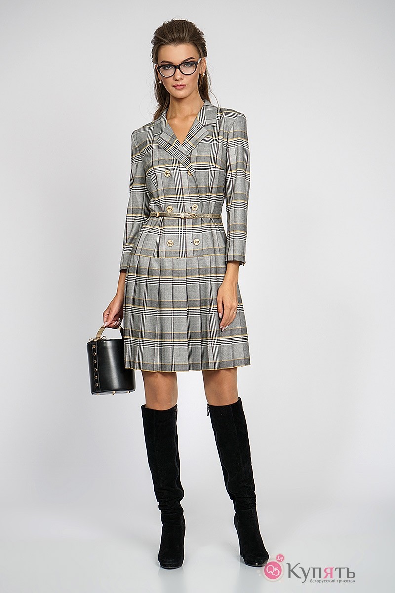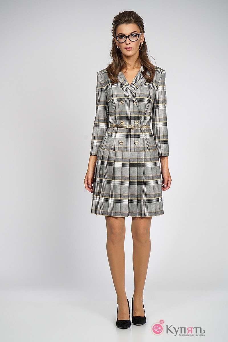 Платье ALANI COLLECTION 756 серо-золотая клетка