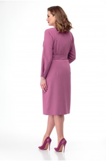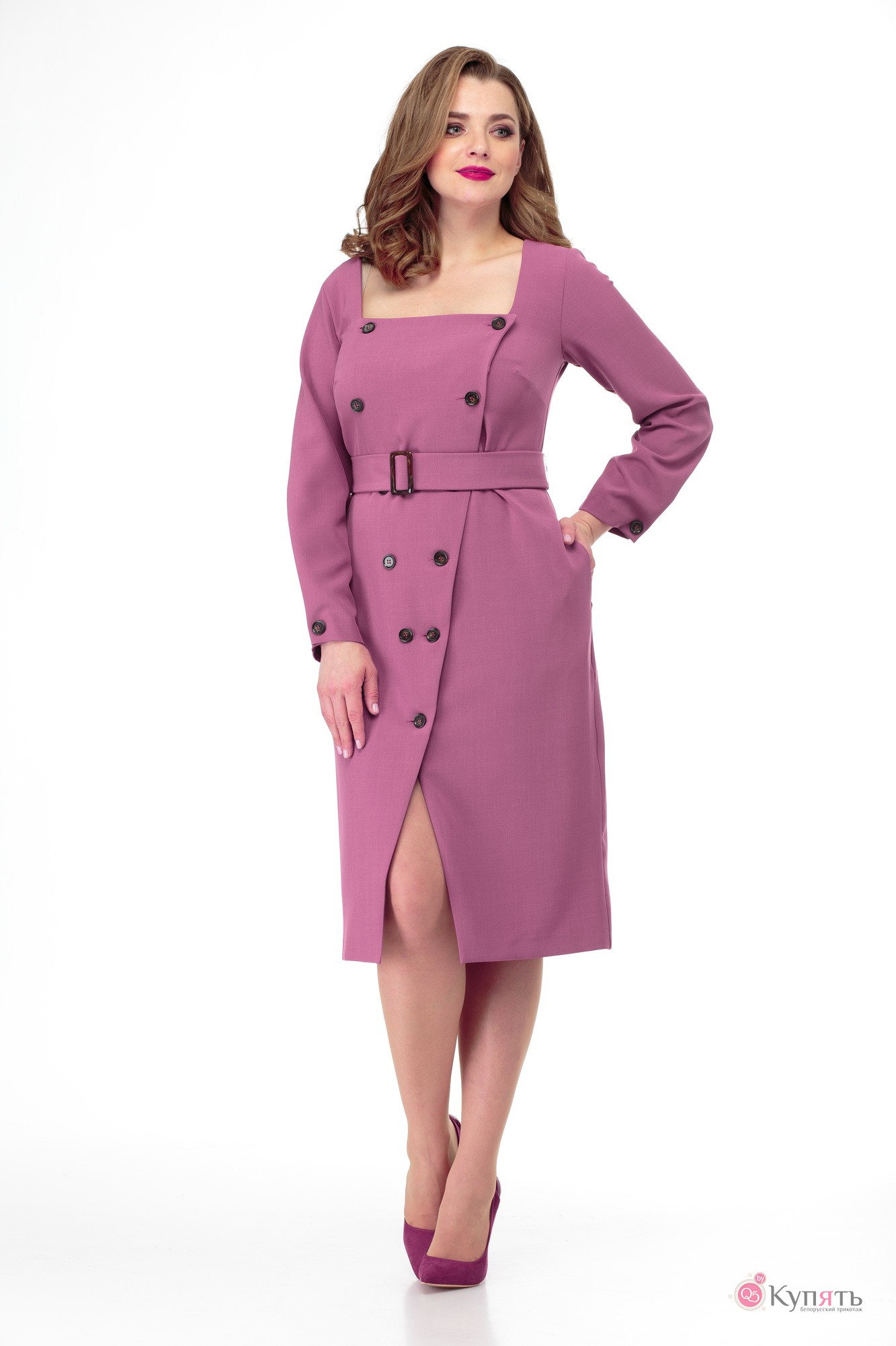 Рукава втачные, длинные, с отделкой пуговицами. Съемный пояс с пряжкой дополняет образ