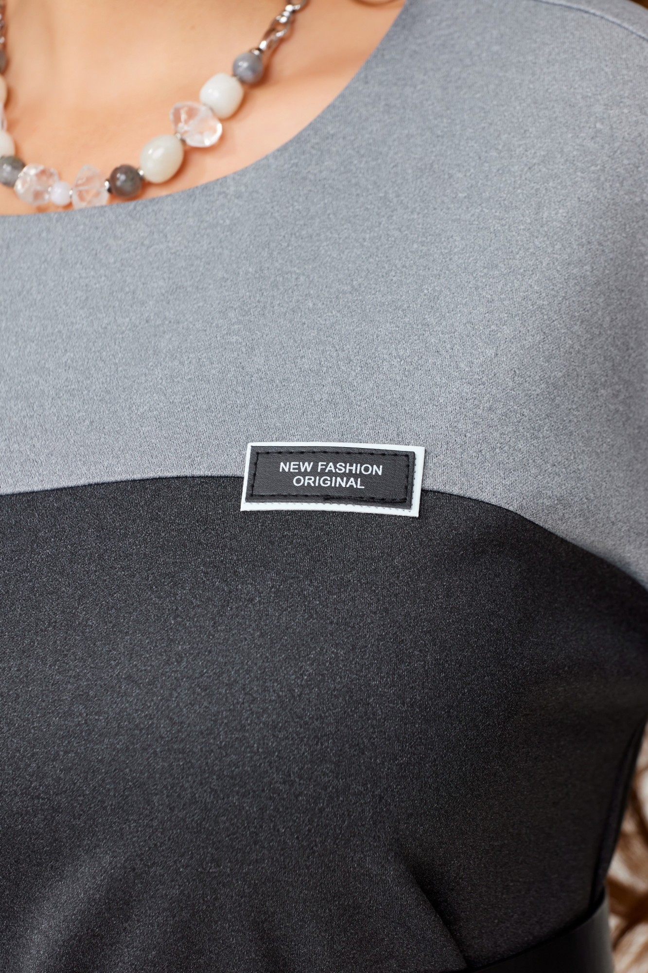 Женское трикотажное платье "Веста" выполнено из трикотажной ткани. Платье без подкладки, прямого силуэта с съемным поясом. По спинке и полочке - притачные кокетки. По центру рукава - шов. Горловина платья обработана обтачкой, на полочке пришита декоративная нашивка, по бокам - разрезы. Низ рукава и низ платья обработаны распошивалкой.