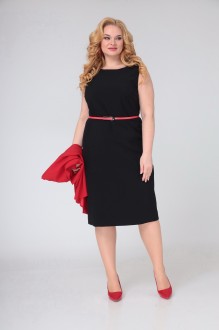 Горловина платья круглая. По переду платья расположены нагрудные вытачки. Спинка с талиевыми вытачками и средним швом, в который вставлена потайная молния. По низу спинки обработана шлица.