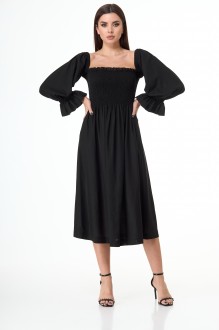 Платье длины миди, с прилегающим лифом, полностью собранным на нитку-резинку, прекрасно сядет на любую фигуру, низ платья свободный, не сковывает движений.