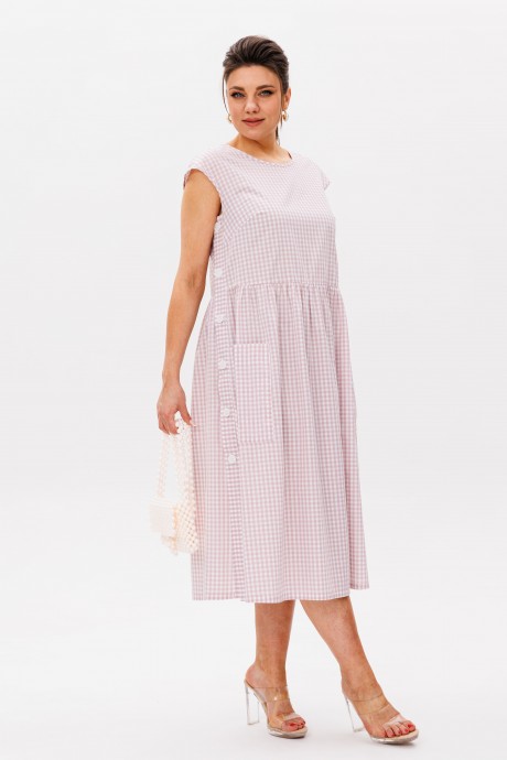 Отрезной крой по талии деликатно подчеркивает силуэт, а декоративные петли с пуговицами по бокам придают платью изящную деталь, делая его интереснее. Воздушная миди-длина удобна для прогулок и отдыха, а натуральная ткань позволяет коже дышать даже в самый теплый день.