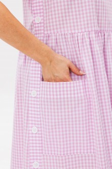 Отрезной крой по талии деликатно подчеркивает силуэт, а декоративные петли с пуговицами по бокам придают платью изящную деталь, делая его интереснее. Воздушная миди-длина удобна для прогулок и отдыха, а натуральная ткань позволяет коже дышать даже в самый теплый день.