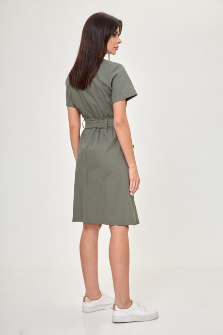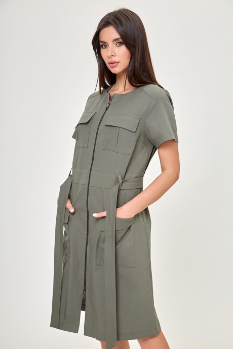 Платье прямого силуэта, чуть расширенное к низу, длина до колен, по переду на молнии. Притачной пояс на резинке по спинке, для лучшего прилегания. Функциональные нагрудные и набедренные карманы по переду. Втачной короткий рукав. Подчеркнуть талию можно при помощи съемного пояса. Платье идеальный вариант для сезона весна-лето, в нем вы будете чувствовать себя комфортно и стильно. С уверенностью можно сказать, что эта модель будет актуальна не один сезон.