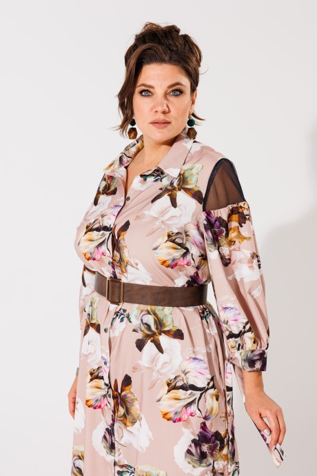 Это платье от Анелли сочетает в себе элегантность и изысканность. Прямой силуэт и рубашечный воротник создают классический образ, а кружевные вставки по рукаву и оригинальный принтованный дизайн добавляют неповторимого очарования.