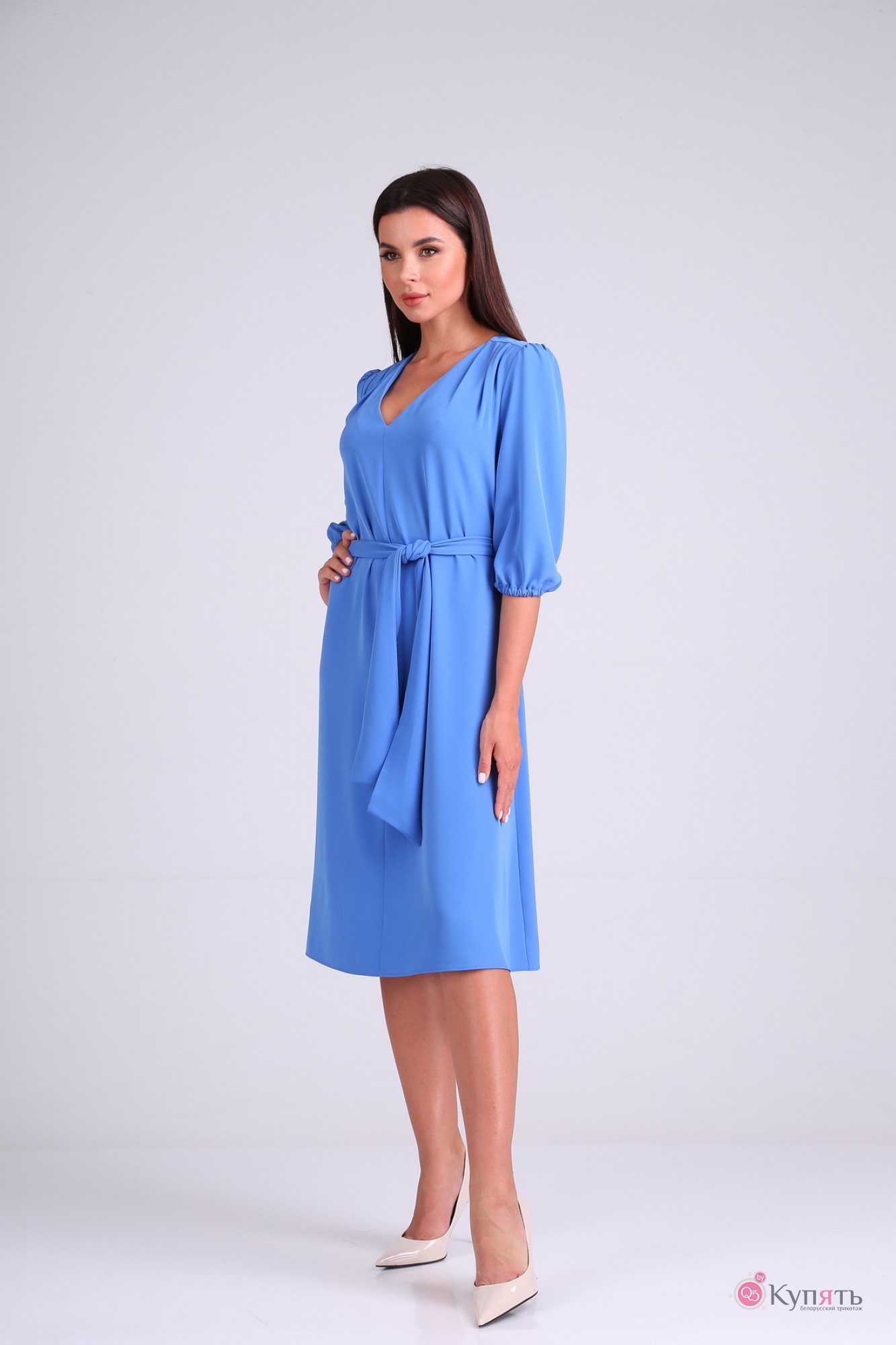 Платье женское свободного кроя расклешённое к низу со съёмным поясом. Спинка со средним швом. Перед с плевыми кокетками и мягкими складками. Рукав втачной одношовный собран на резинку по низу. Горловина V-образной формы.