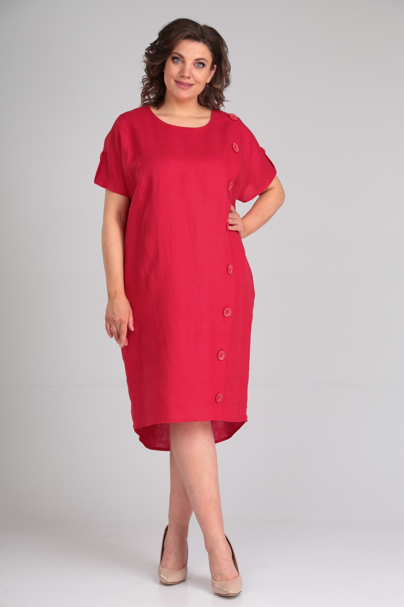 Платье женское полуприлегающего силуэта с цельнокроенным рукавом. По переду рельефные швы,левый рельефный шов с имитацией планки-застёжки на пуговицы. В боковых швах обработаны карманы. По спинке средний шов заканчивающийся разрезом. По плечевым швам отделочные хлястики с пуговицей. В качестве отделки используется отделочная строчка и фурнитура.