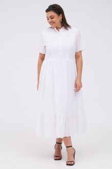 Платье женское свободного силуэта, отрезное по линии талии. Перед лифа с притачной планкой, которая застегивается на петли и пуговицы. Юбка платья имеет два яруса, которые собраны на сборку. Горловина обработана воротником–стойкой.