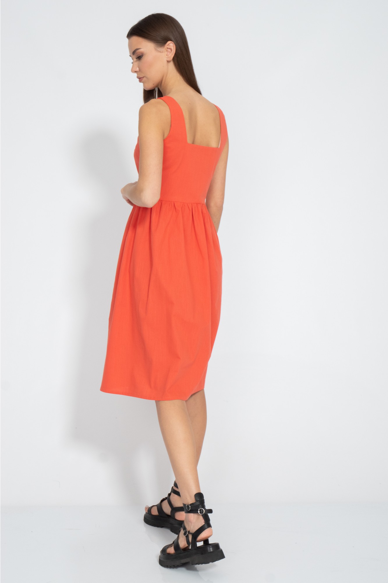 Платье с пуговицами по переду на бретелях из хлопка - это милое и нежное платье для летних прогулок. Это платье имеет приталенный крой, бретели и круглый вырез горловины. Платье застегивается на пуговицы по всей длине переда. Хлопок - это натуральная ткань, которая хорошо дышит, не мнется и приятна к телу. Платье с пуговицами по переду на бретелях можно носить с кедами, босоножками или туфлями, а также с разными украшениями и сумками.