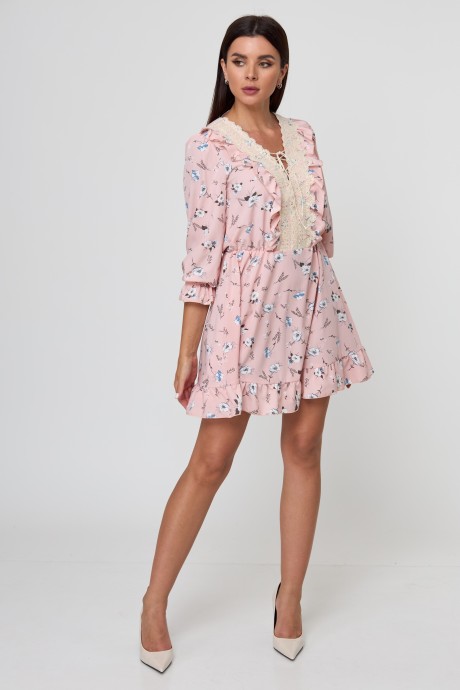 Платье Anelli 1023 пудра с цветами