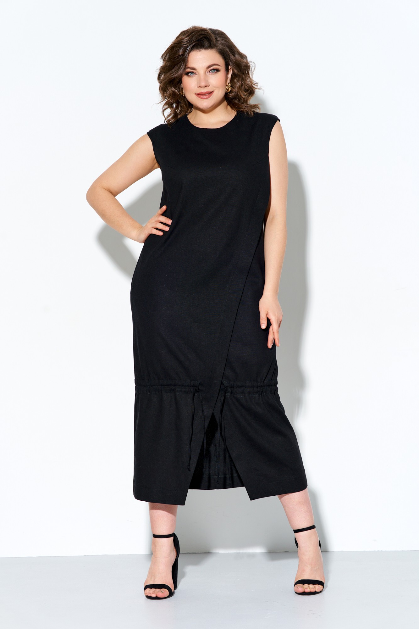 Женское летнее платье полуприлегающего силуэта выполнено из мягкого натурального льна (не колется) с добавлением стрейча. По переду платья декоративная планка, по низу функциональная кулиска-завязка, в боковых швах карманы, по спинке застежка-молния.