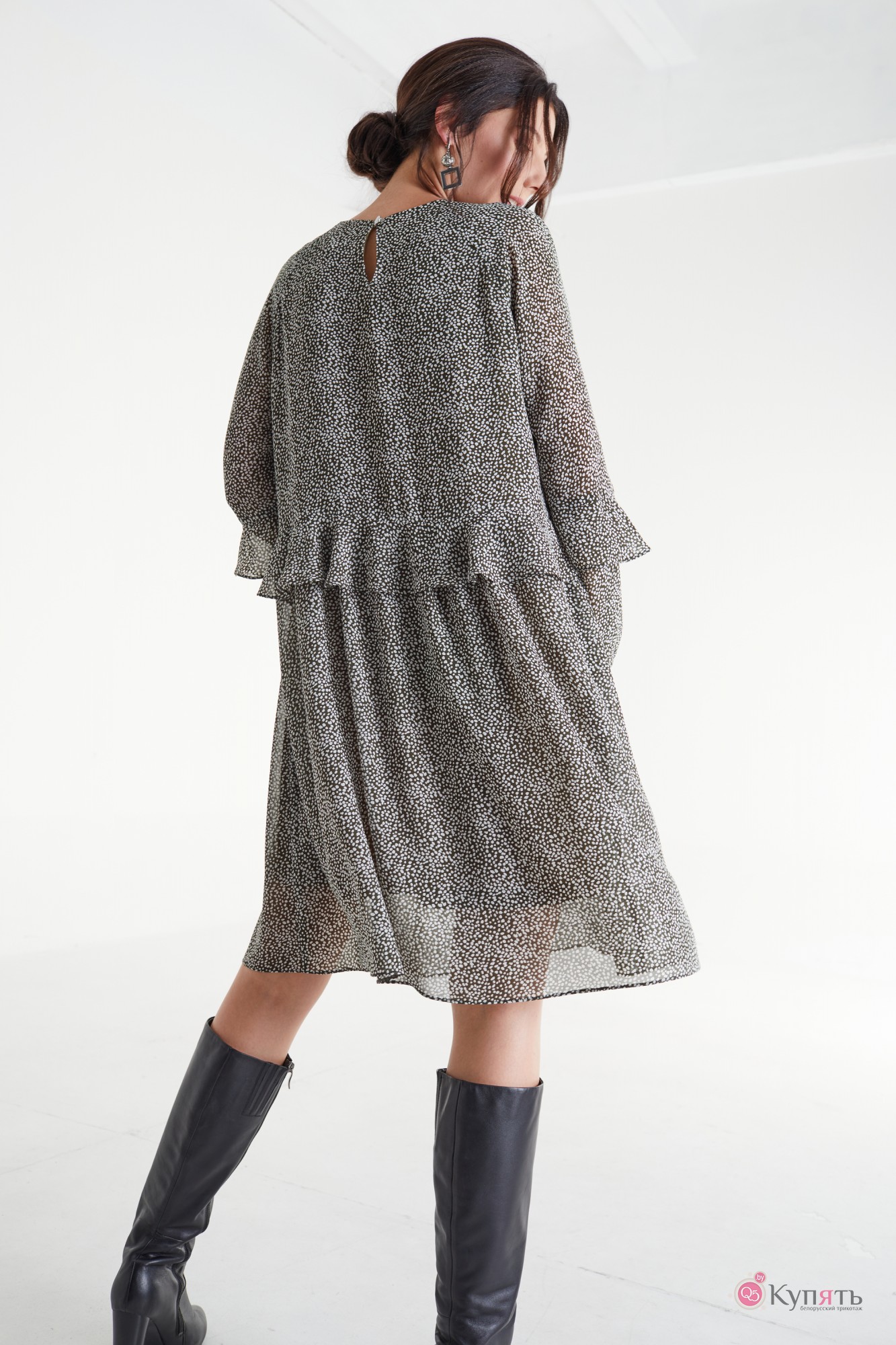 Платье женское свободного силуэта с горловиной округлой формы, на подкладке.