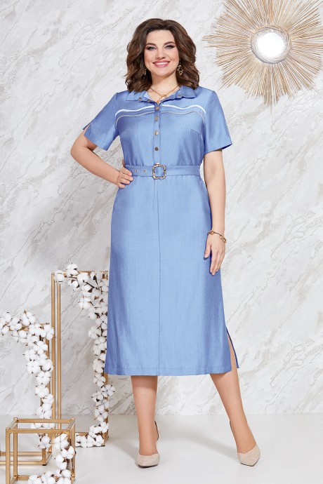 Элегантное женское платье, полу-прилегающего силуэта, выполнено из джинса с натуральным составом. Полочка платья отрезная по линии талии, горловина обработана втачным воротником на стойке, застежка на планку с кнопками. Юбка платья прямого силуэта, со средним швом. Спинка идентична полочке, со средним швом и встречной складкой, по боковым швам разрезы. Рукав втачной, укороченный, со средним швом и разрезом по низу. На полочке выполнен эффектный декор в виде настрочного шнура, по линии талии съемный пояс из основной ткани. Стильное платье выполненное из эффектной ткани — это то, что нужно для вас!