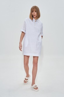 Платье поло из белоснежного шитья премиального качества. Изделие на хлопковой подкладке, застежка молния, по бокам декоративная тесьма.