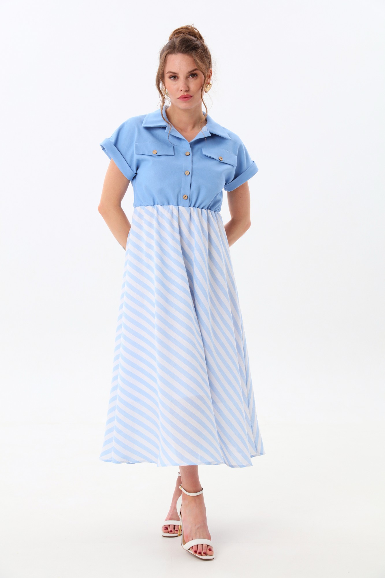 Платье NikVa н969 -2 голубой+бело-голубая полоска