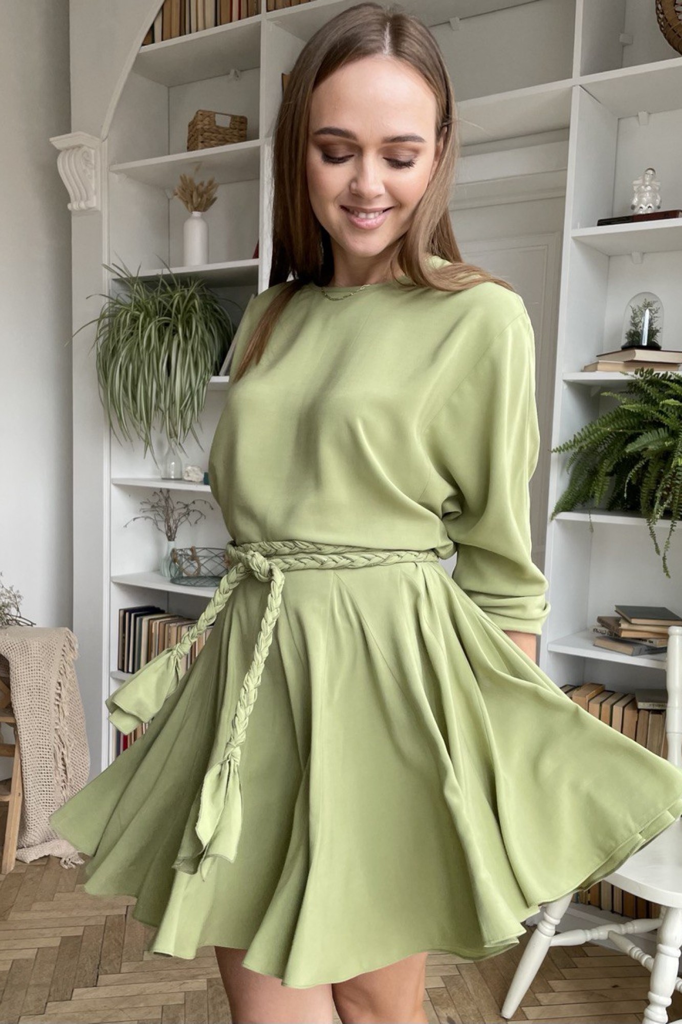 Расширение юбки получается из-за втачных треугольных клиньев, выглядит как складки