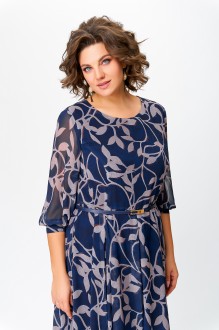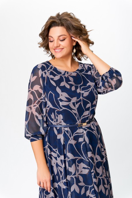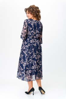 Платье из шифоновой ткани на трикотажной подкладке , Х-образного силуэта с полуприлегающим лифом. Платье отрезное по линии талии. По переду лифа расположены рельефы, по спинке лифа таллиевые выточки. Юбка расклешенная из шести клиньев со встречными складками по линии талии. В среднем шве спинки предусмотрена молния. Рукав втачной длиной ¾, по низу манжета с эластичной вставкой .