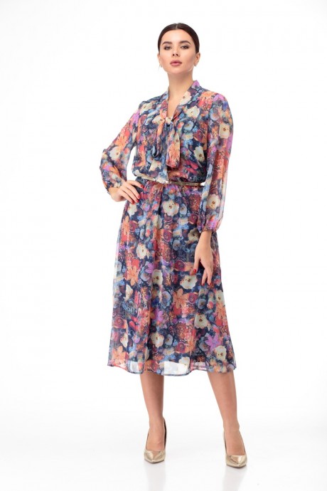 Платье Anelli 675 синие тона с цветочным принтом с ID товара 261903