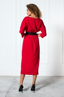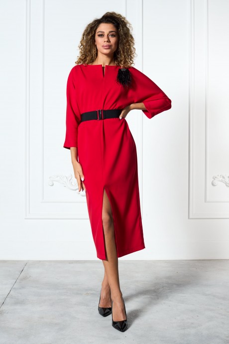 Платье полуприлегающего силуэта с цельнокроеным рукавом. Перед со средним швом и разрезом в нижней части и по горловине. Спинка разрезная на потайную тесьму «молния». Платье со съёмным поясом и декоративной брошью. На поясе пряжка будет обычная черненая рамка застегивающаяся между собой!