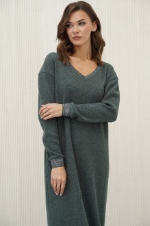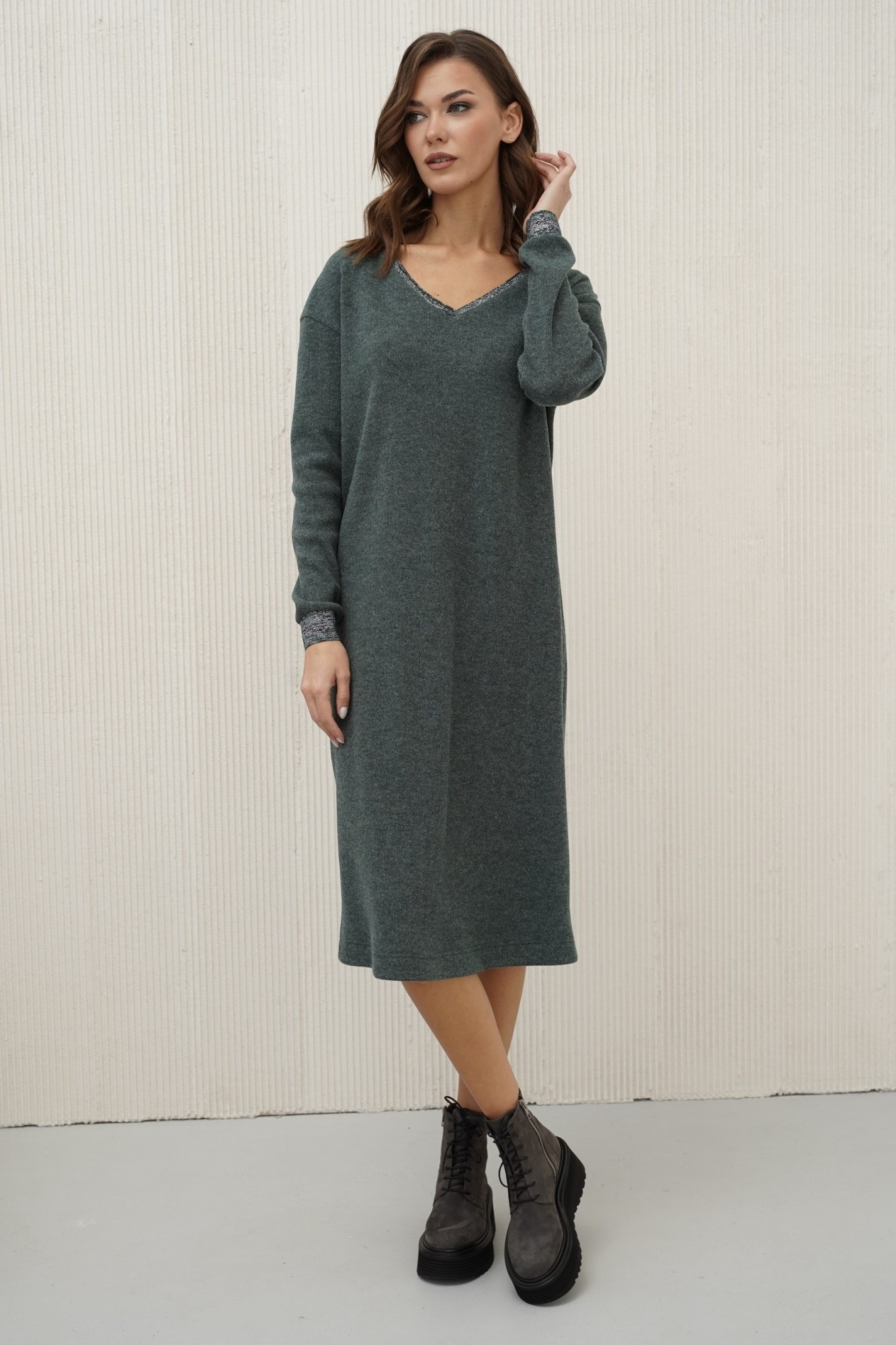 Длинное трикотажное платье - главный фаворит модного осеннего сезона. Это пожалуй самый удобный, простой и комфортный выбор. С ним не требуется лишний раз задумываться о том, какой образ создать. Это уже идеальное готовое решение, которое стоит дополнить лишь аксессуарами. Свободный упрямлённый силуэт со слегка заниженной линией плеча, комфортный рукав, слегка расширенный в верхней части, стильный v-образный вырез. По линии горловины и низкам рукава отделочная тесьма-довяз.